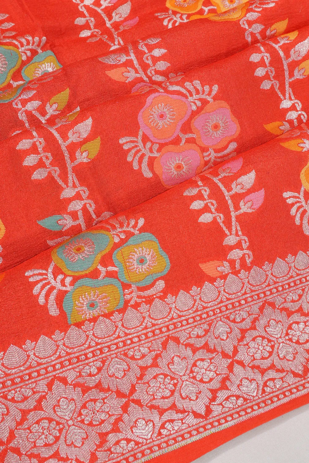 Banarasi Tussar Georgette Jaal Vermillion Red Saree