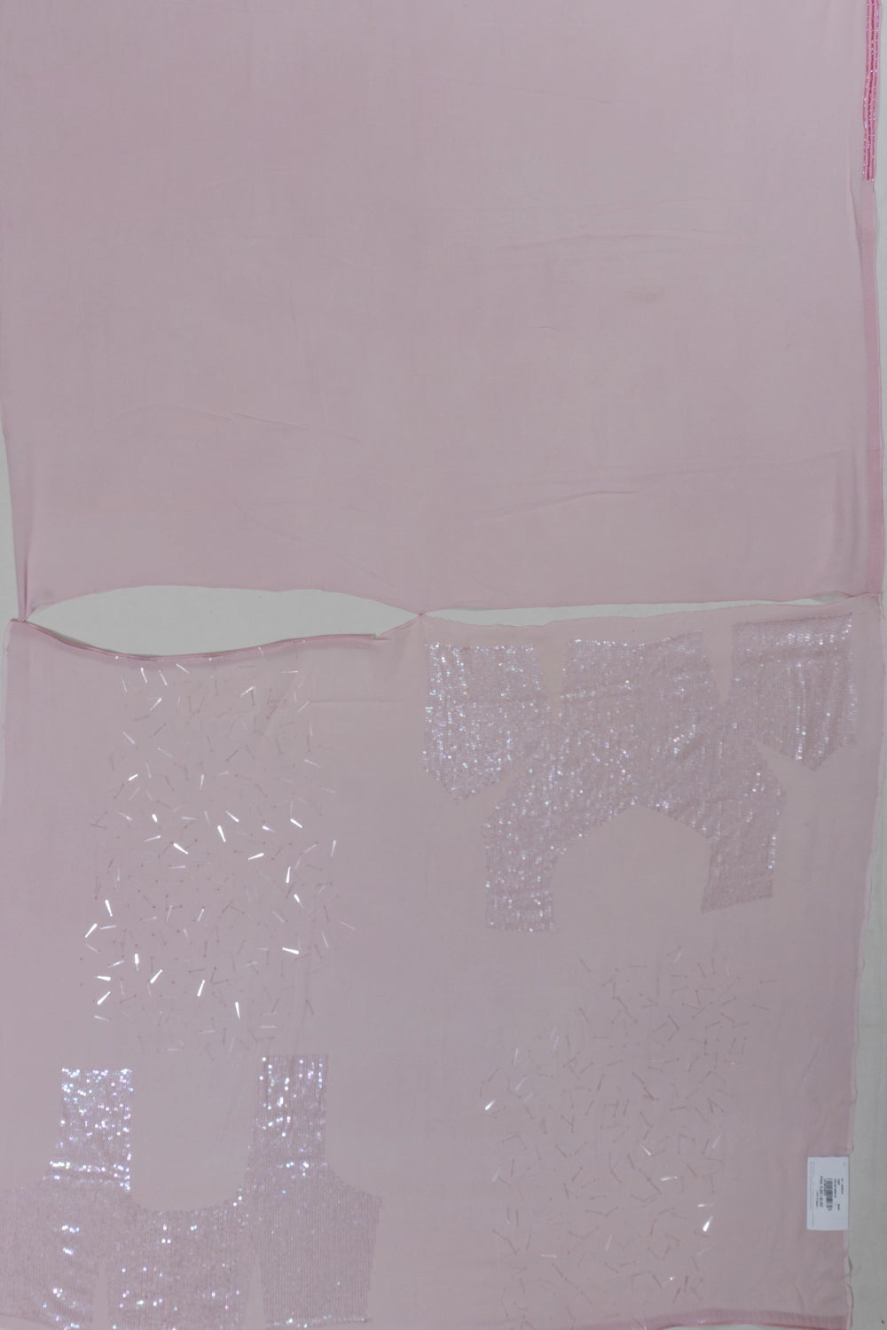 Georgette Plain Baby Pink Saree With Sequin And Nalki Embroidery