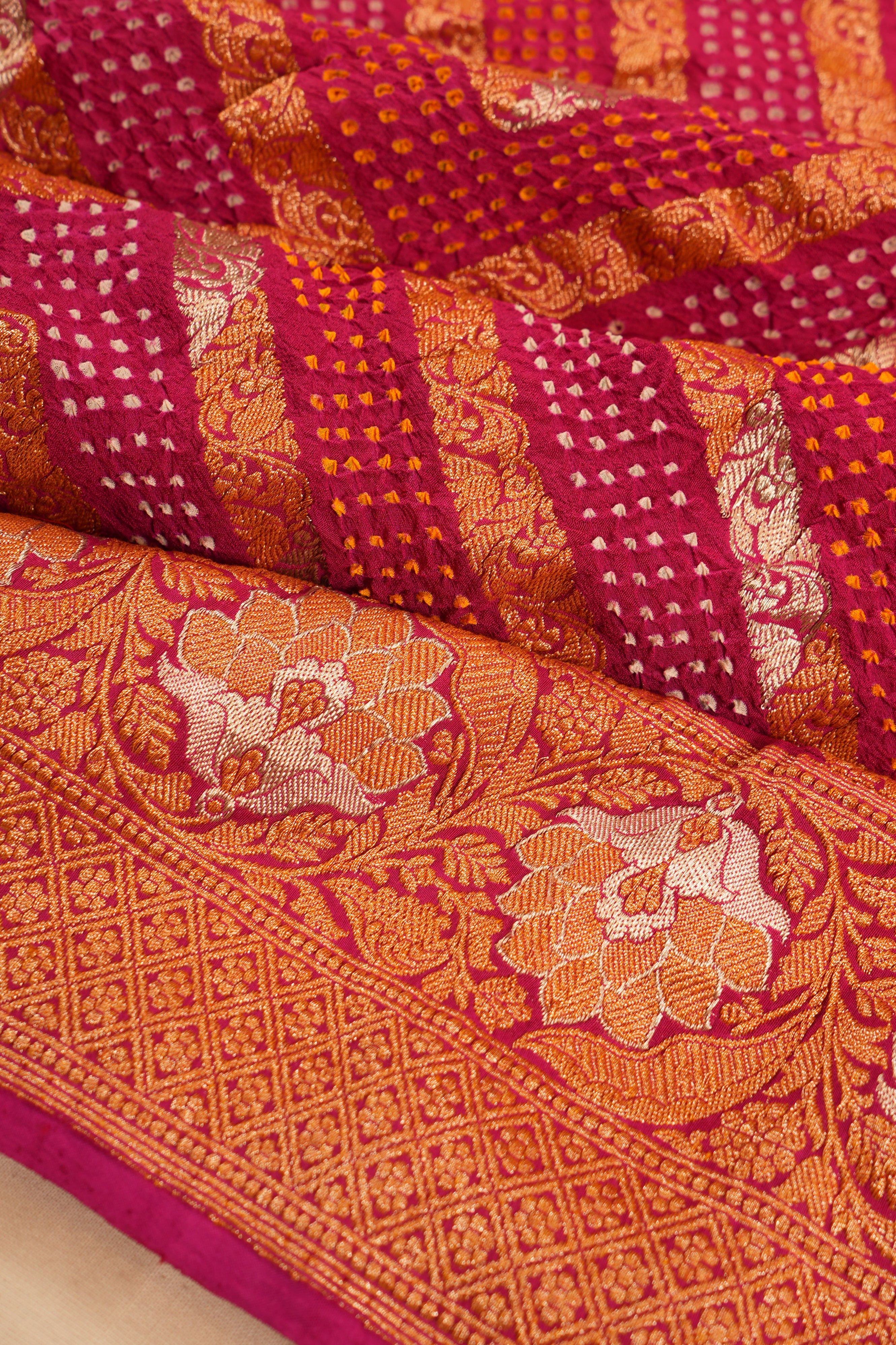 Bandhani saree has an incredible history. Bandhani is a traditional ‘tie and dye’ method, which is one of the oldest techniques still practised in Gujarat. Traditionally, muslin and cotton cloth was used to make a Bandhani saree. But with the increased demands, the weavers started production using Georgette silk, cotton-silk, and other cotton fabrics.
