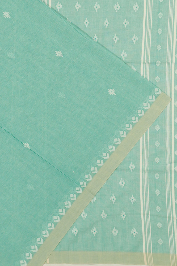 The saree is adorned with intricate floral butta, offering a delicate and timeless appeal.
