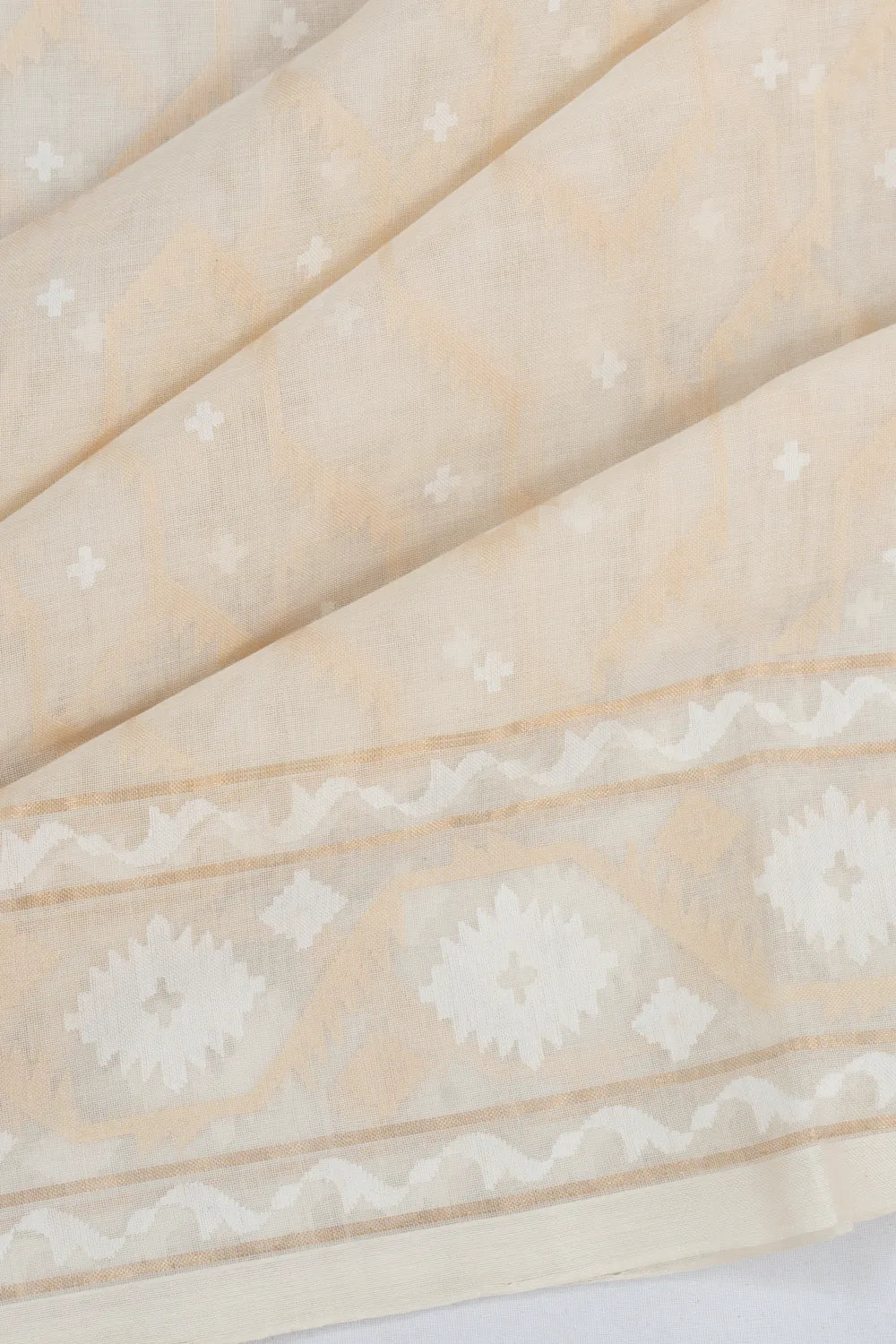 Banarasi Cotton All Over Jamdani Shwetambari Off White Saree