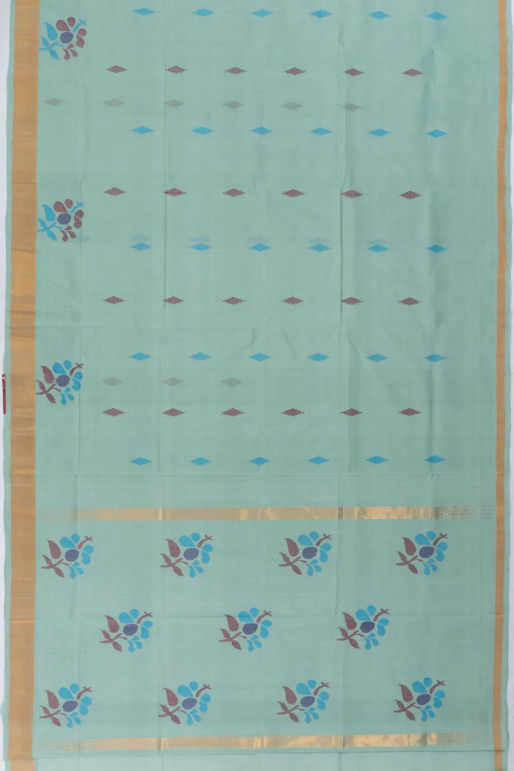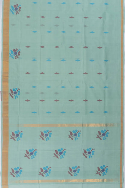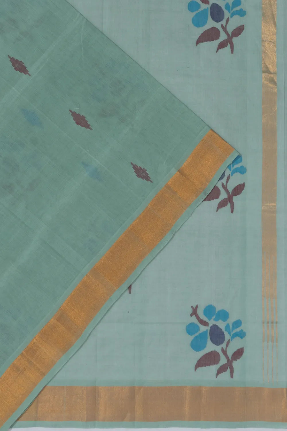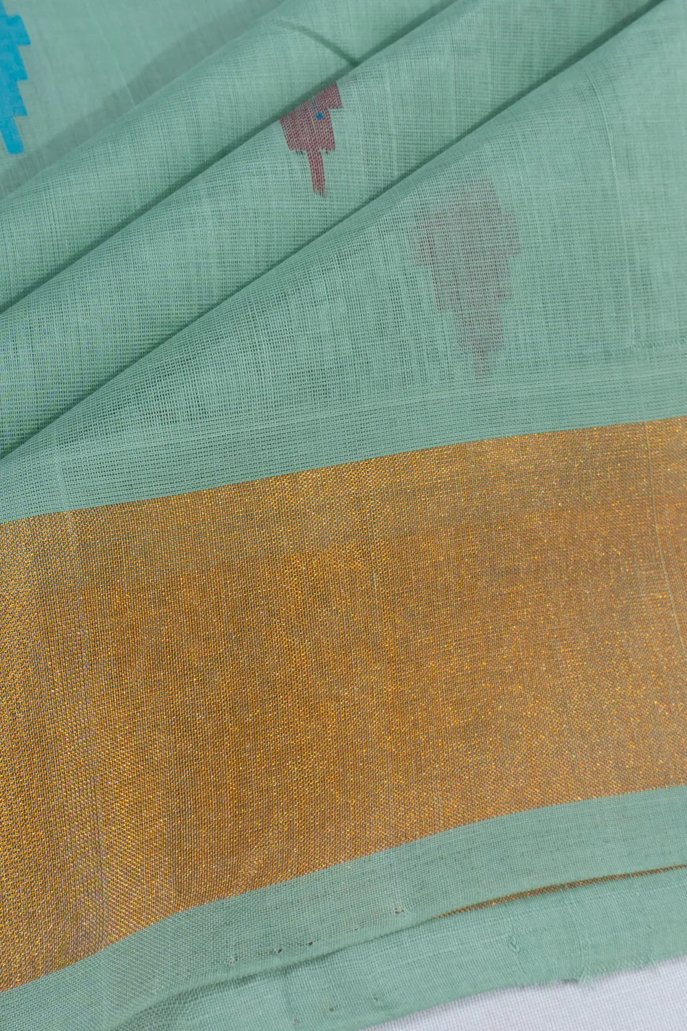 Uppada Handspun Cotton Butta Teal Green Saree With Jamdani Pallu