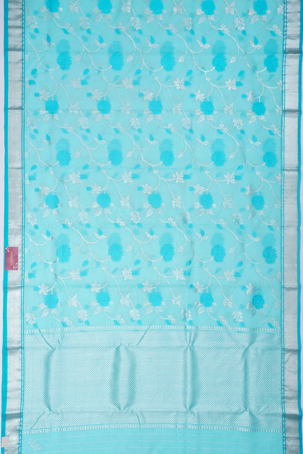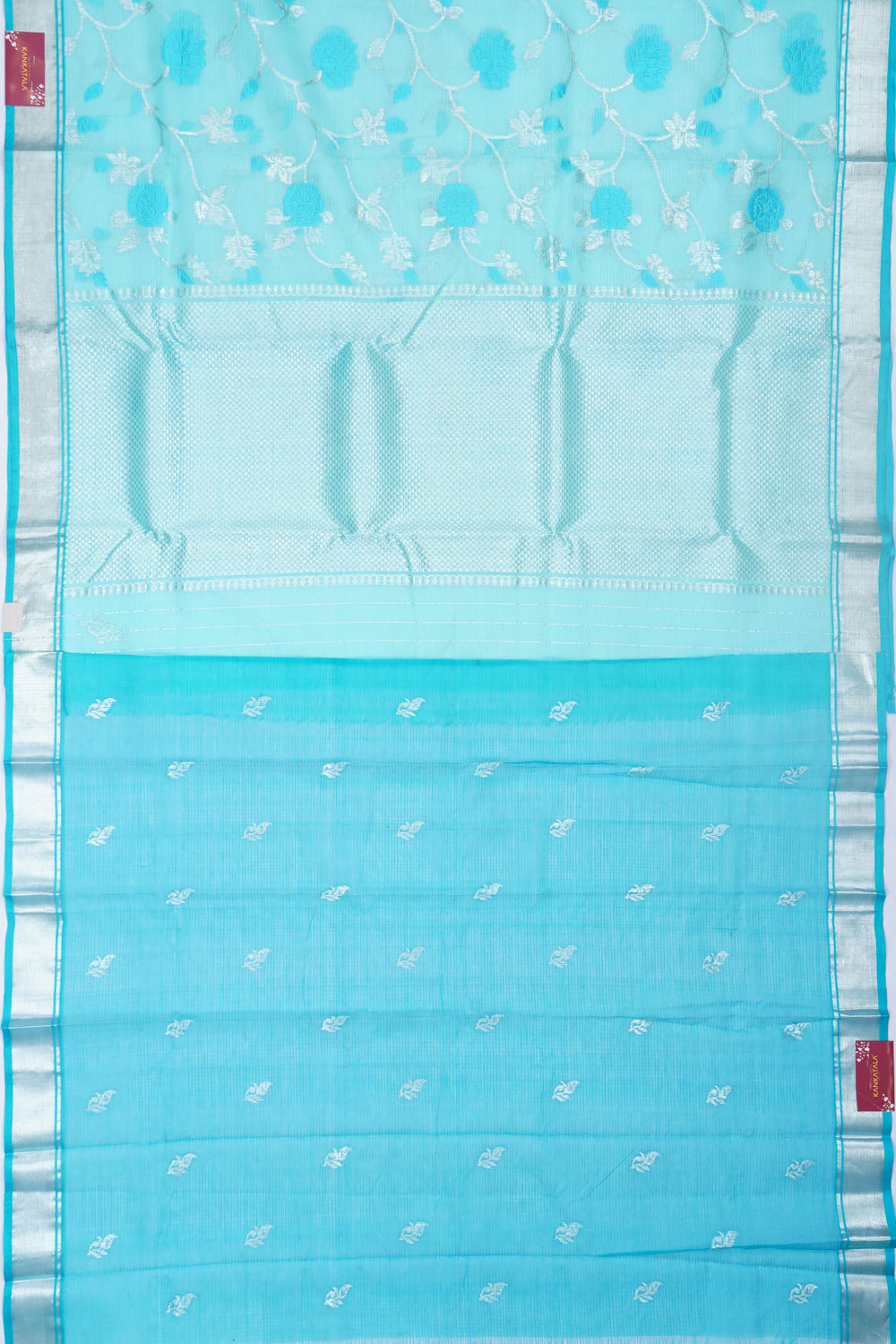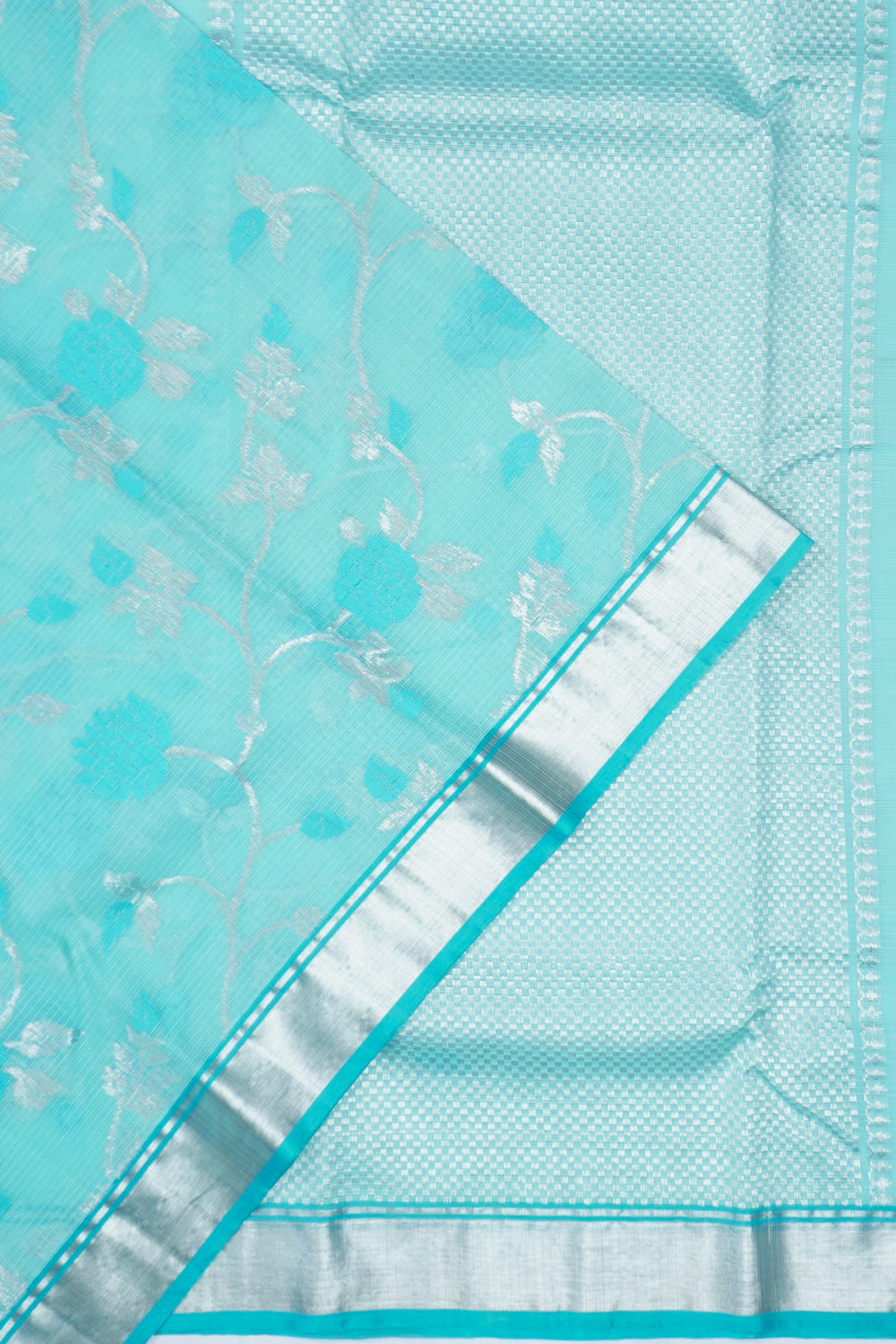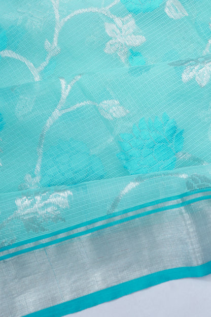Zari Kota Cotton Jaal Sky Blue Saree