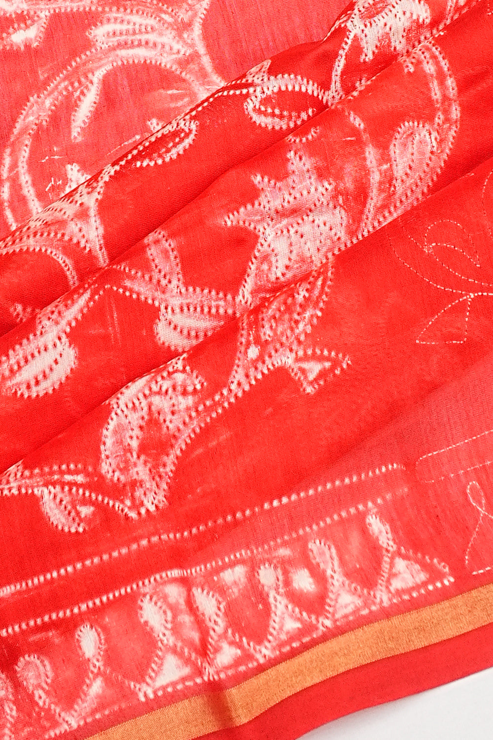 The pure handcrafted cotton fabric is perfect for that rich and luxurious feel. The special dyeing process enhances the brightness of colours and gives a long-lasting & bright effect. Cotton sarees are also perfect for the Indian humid weather. Their breathability helps women move on with their chores with ease, throughout the day. They are also easy to maintain and look extremely elegant when worn properly. The simple texture of these sarees allows for a minimalist look with class.