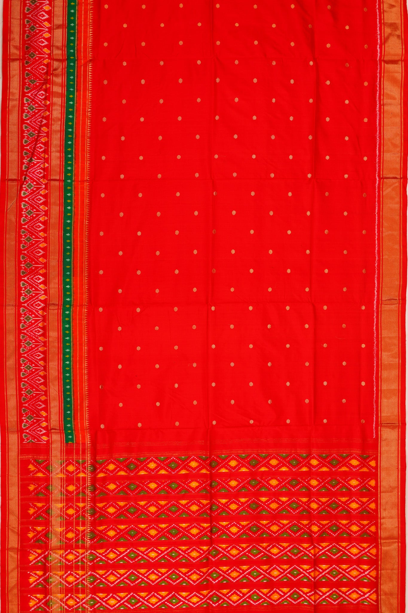 Pochampally Silk Ikat Butta Bright Red Saree