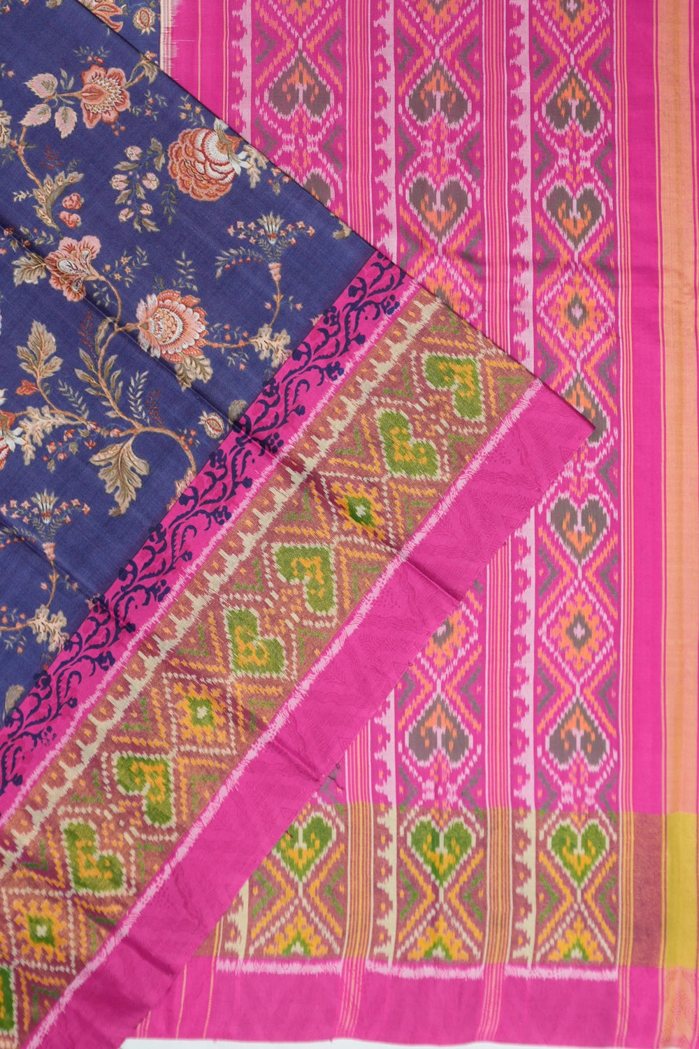 Rajkot Patola Silk Ikat Floral Print Blue Saree