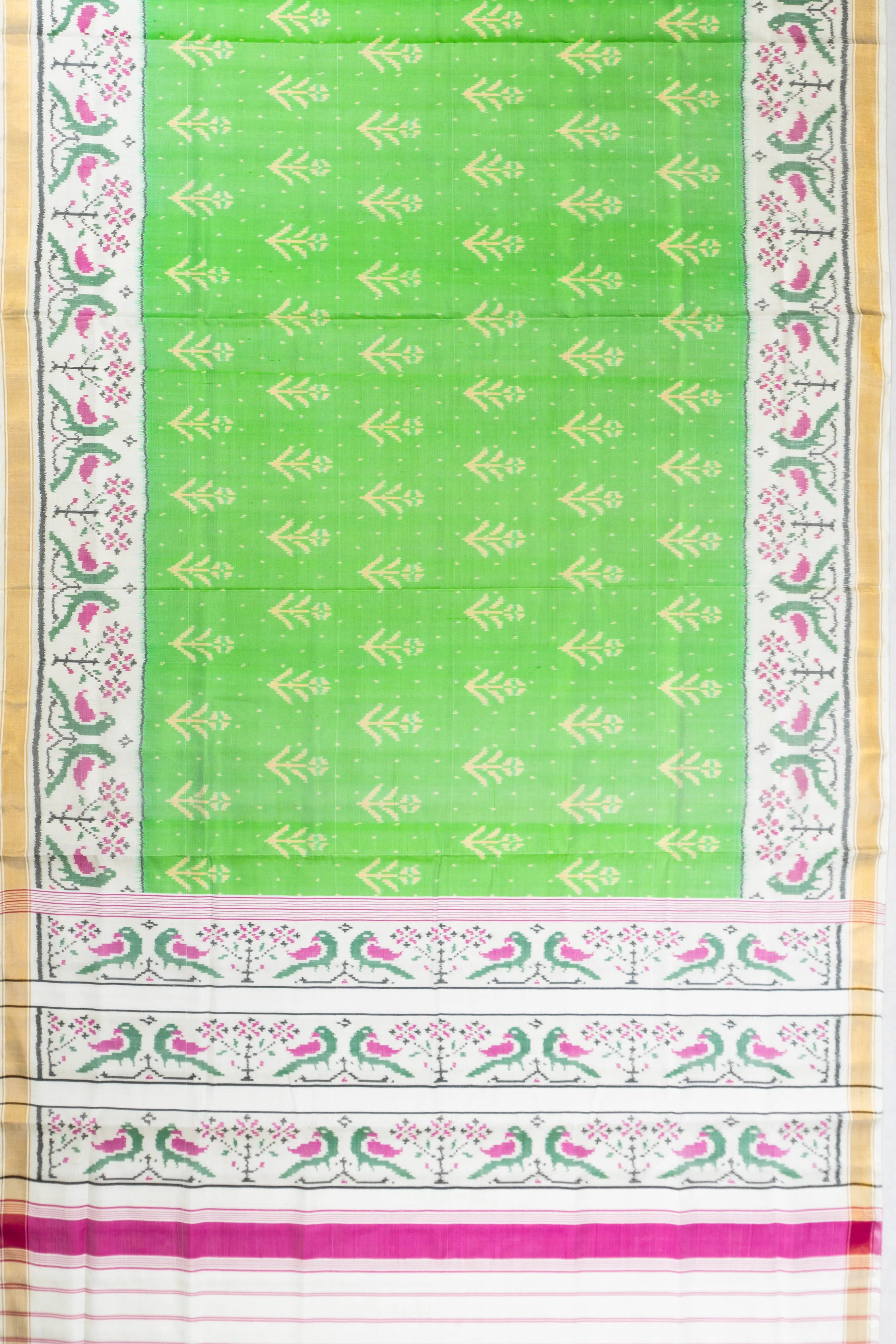 Rajkot Patola Silk Ikat Parrot Green Saree