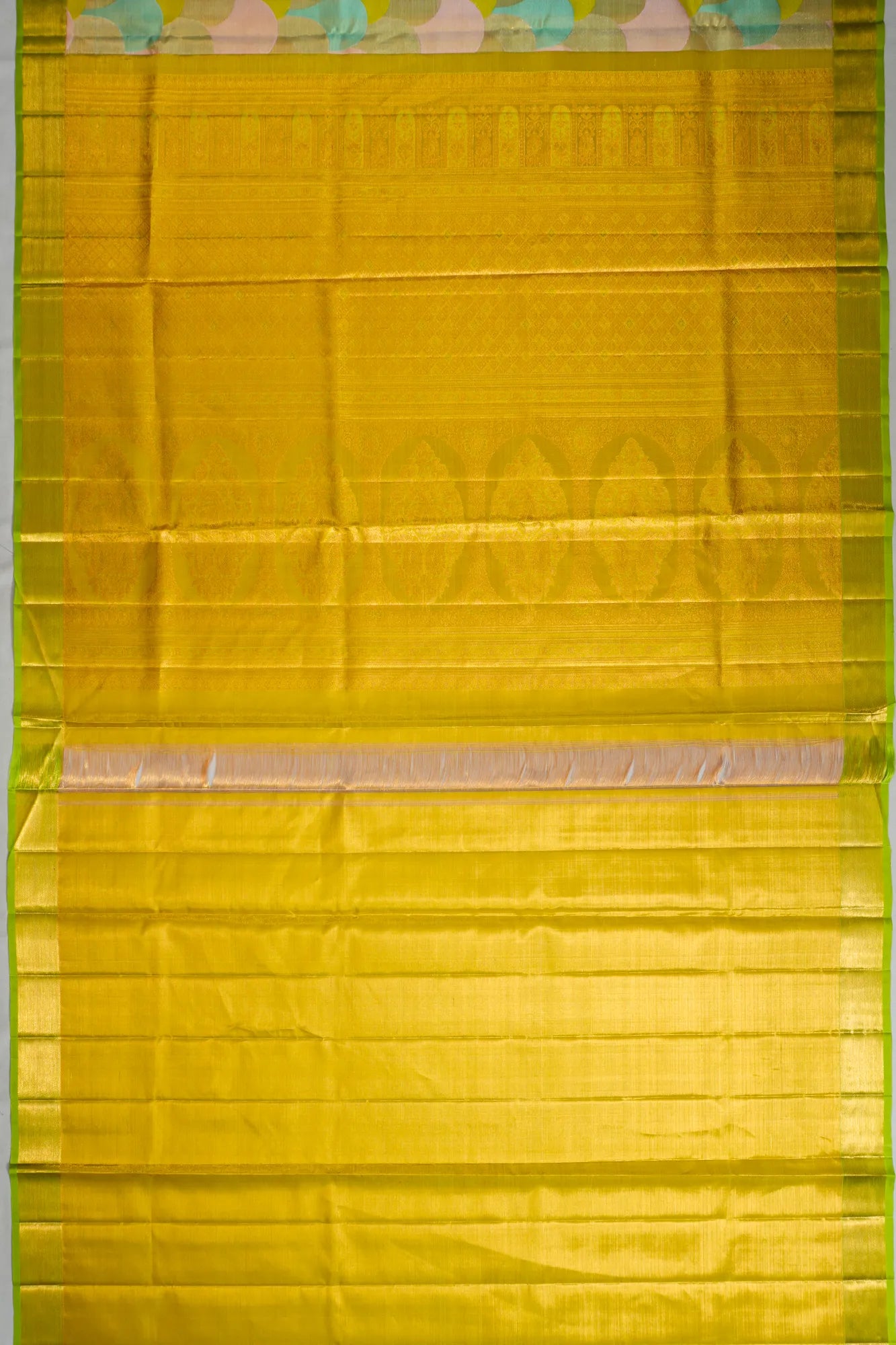Kanchipuram Silk Tissue Geometrical Brocade Multicolour Green Saree