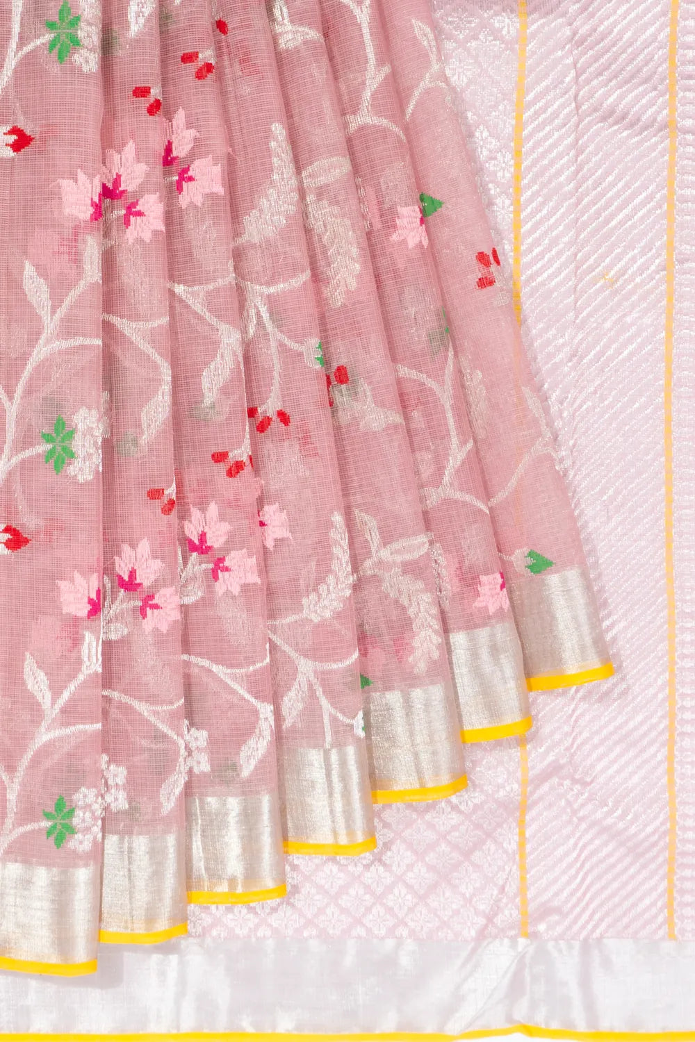 • Banarasi Kora Organza Jamdani Butta White Saree Banarasi Kora Organza Jamdani Butta White Saree