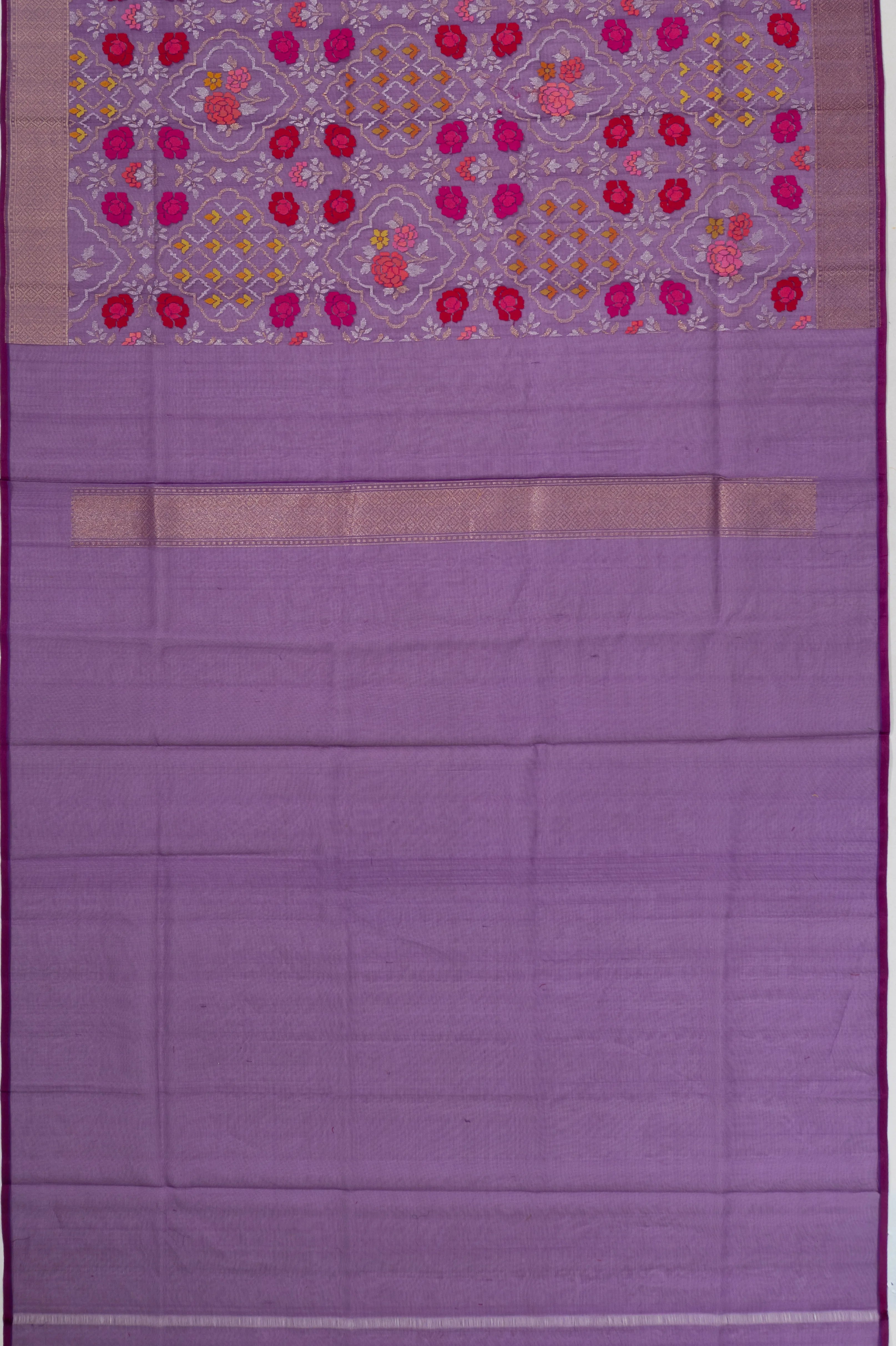 Banarasi Kora Organza Jaal Jamdani Butta Purple Saree