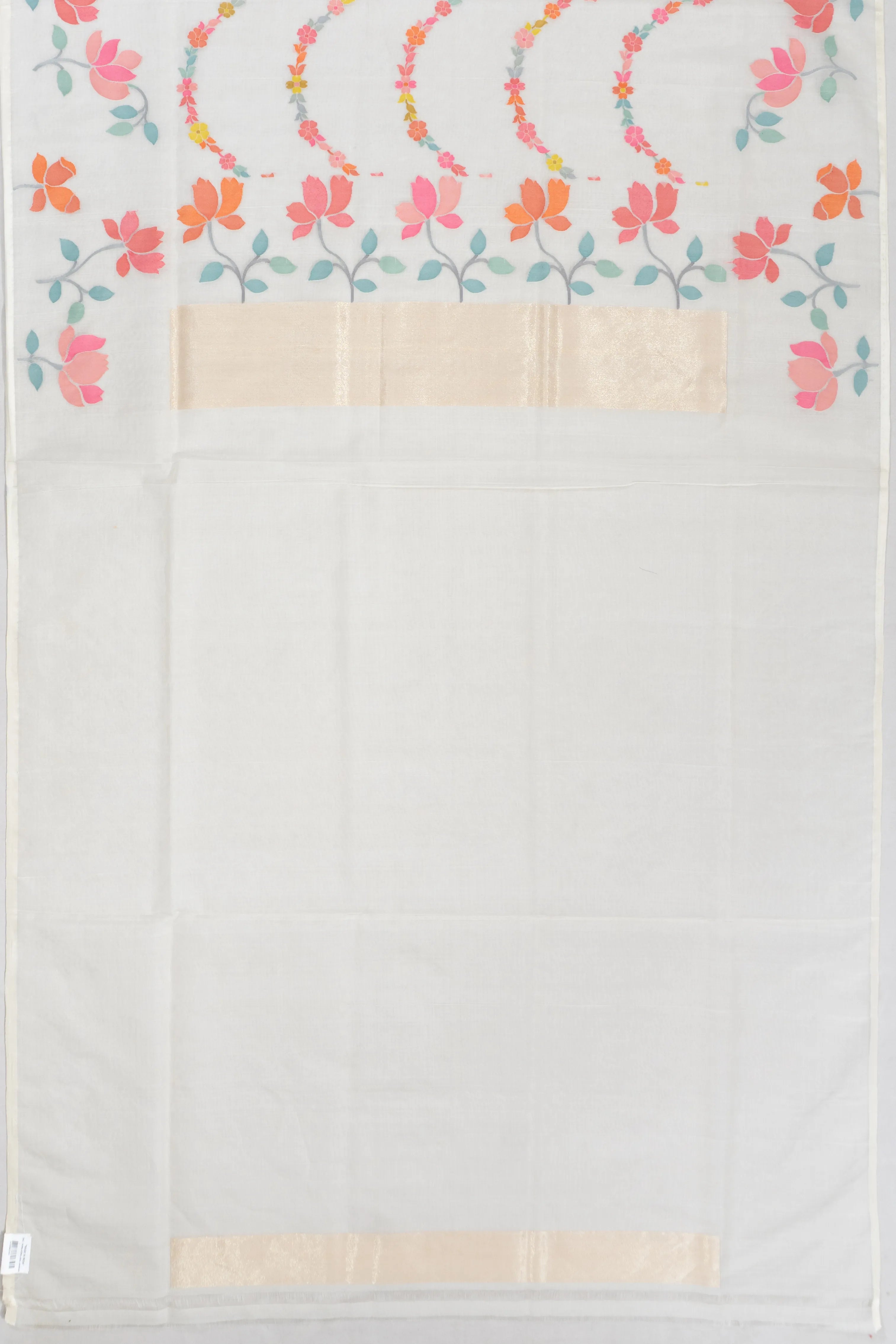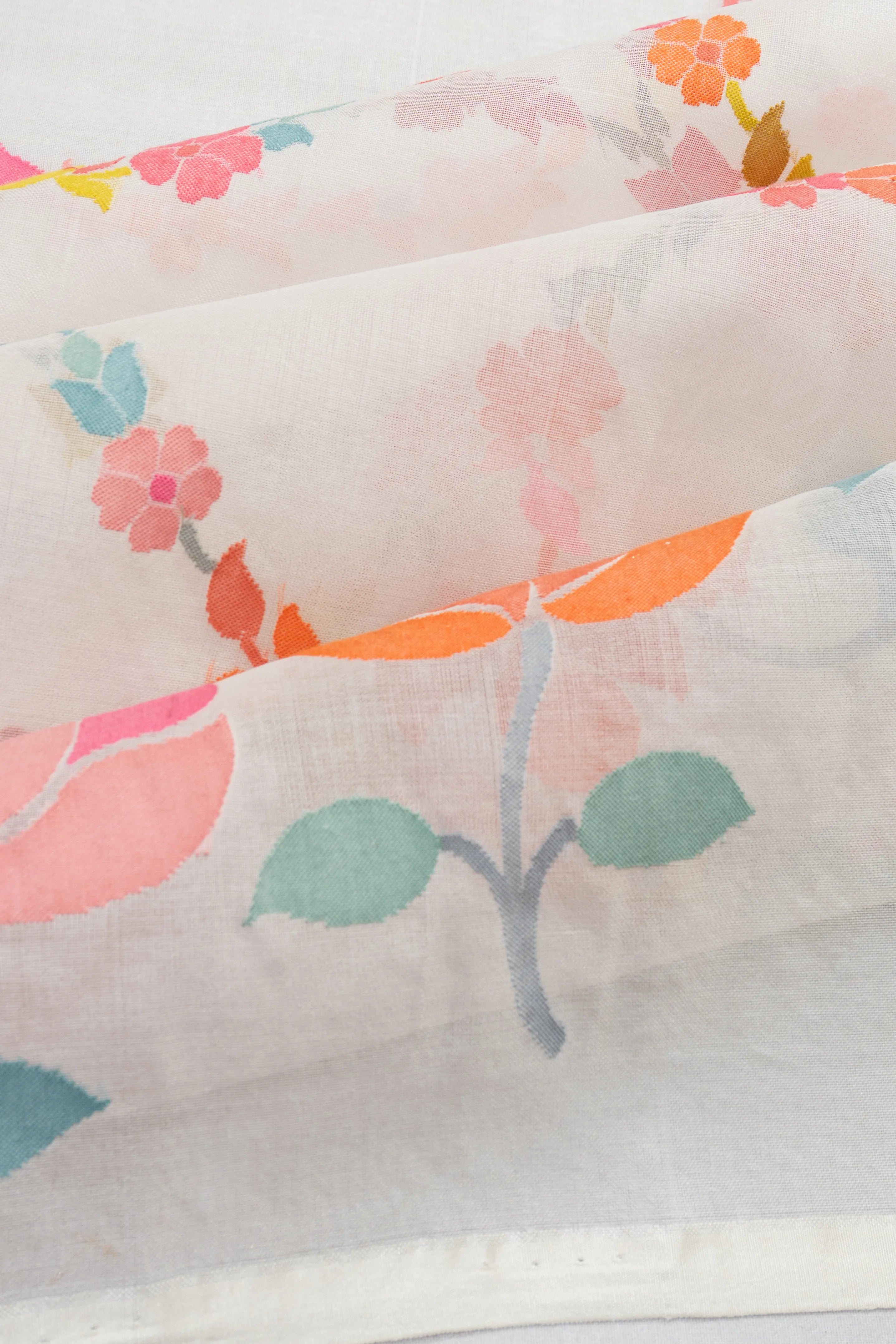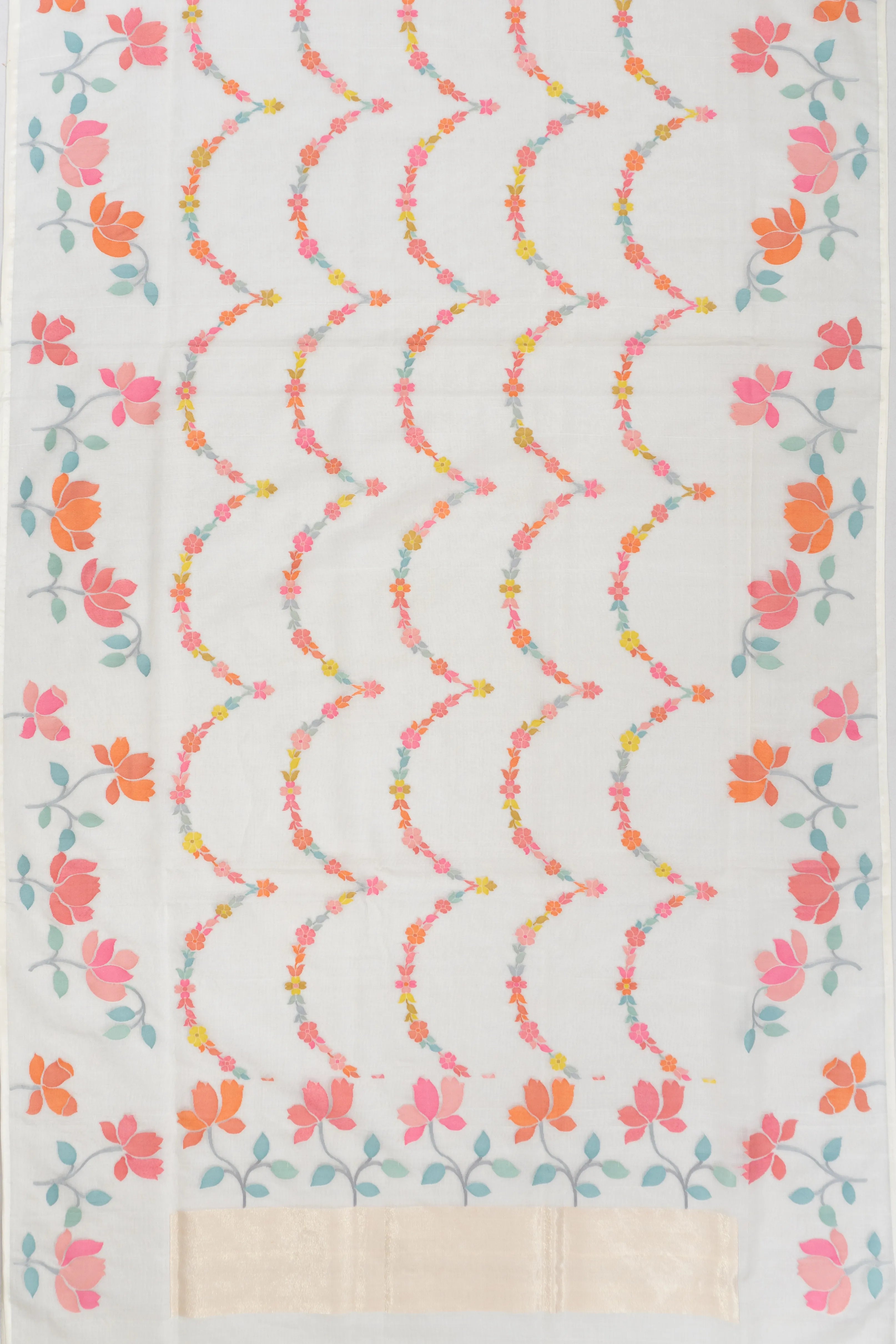 Banarasi Kora Organza Jaal Jamdani Butta White Saree