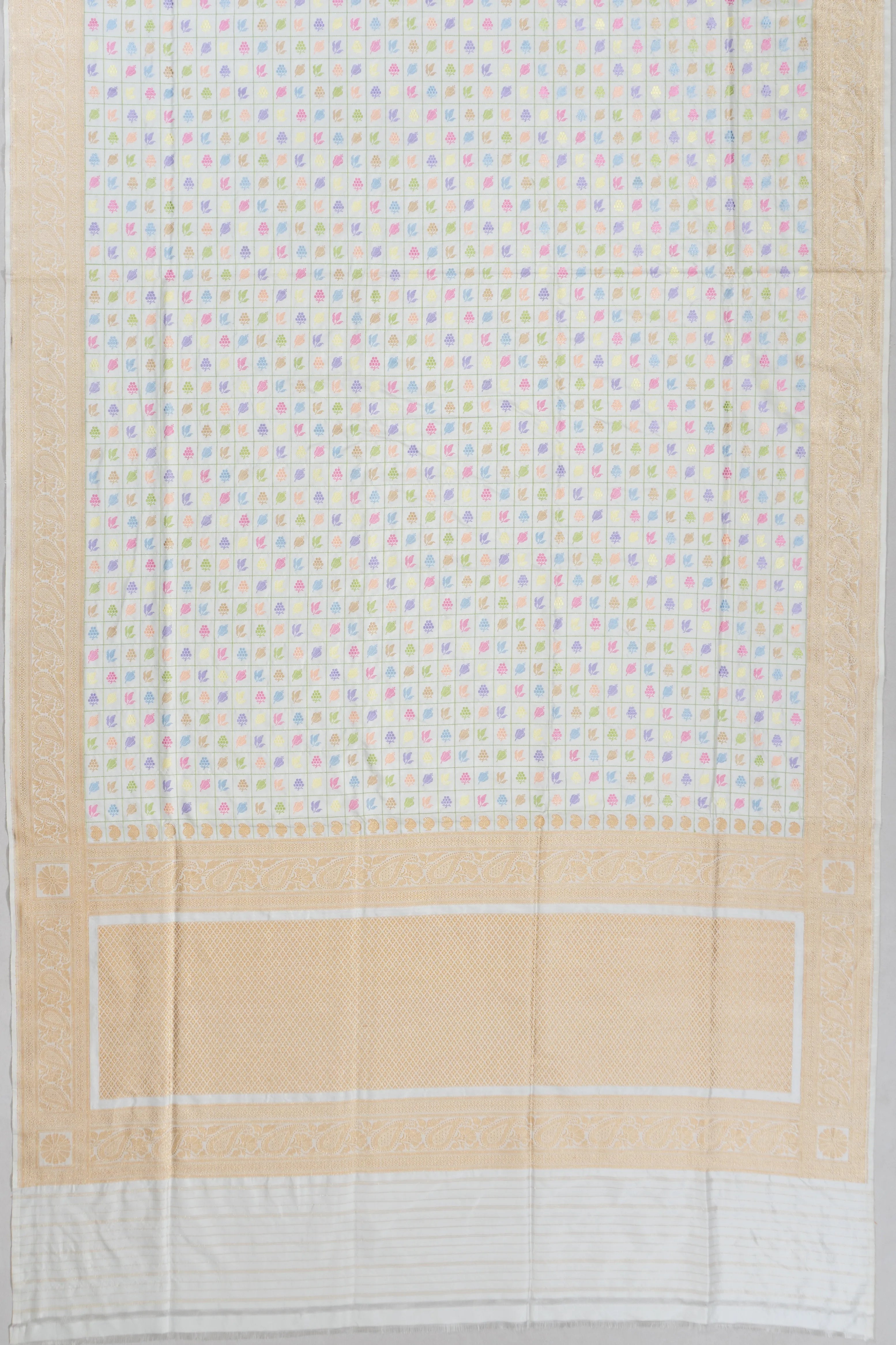 Banarasi Silk Jamdani Checks And Butta White Saree