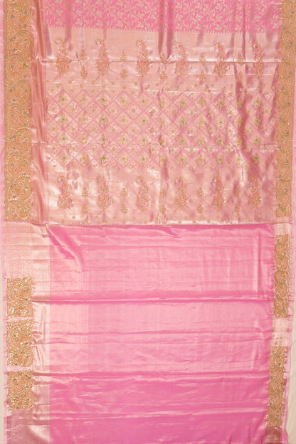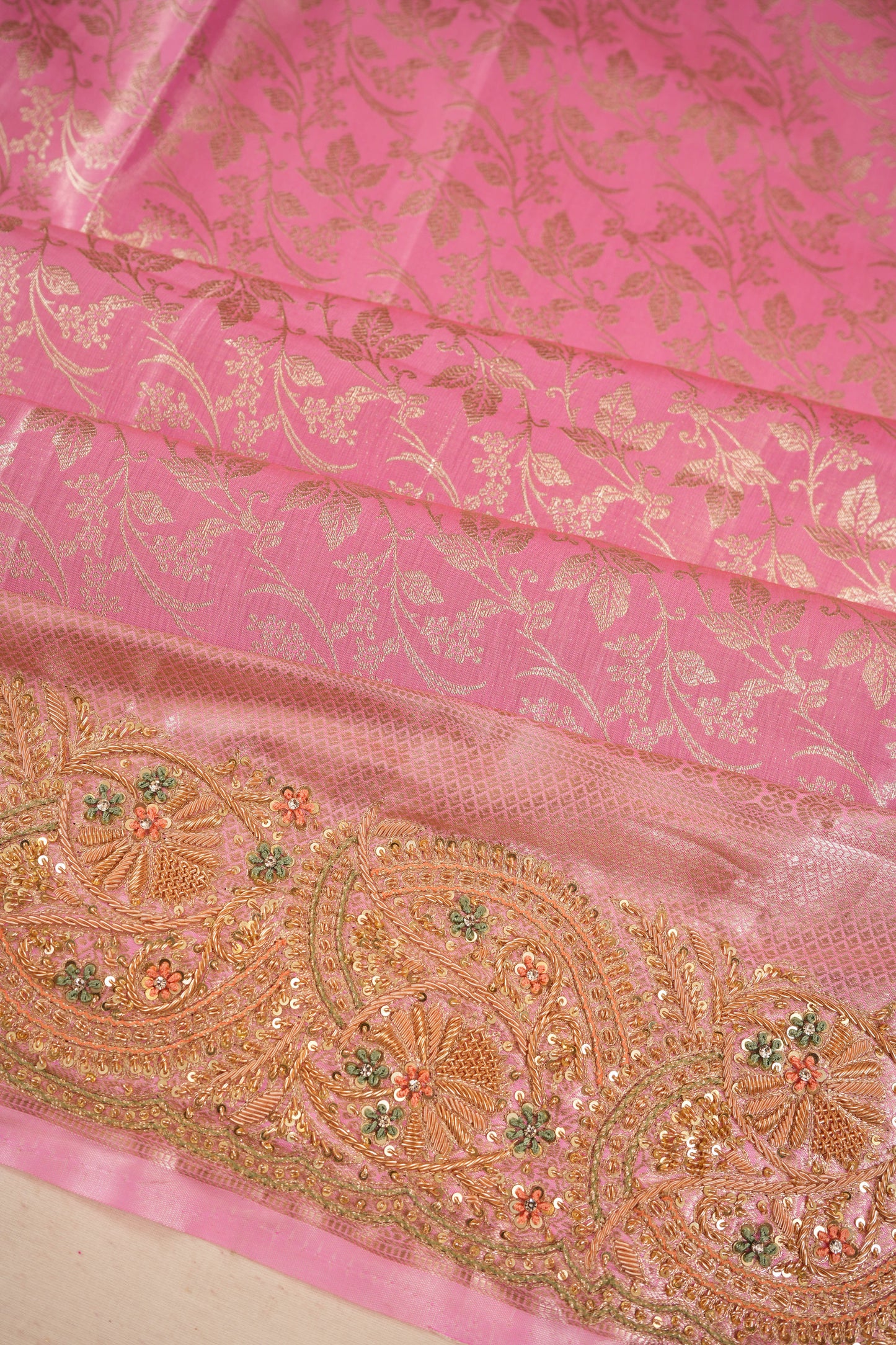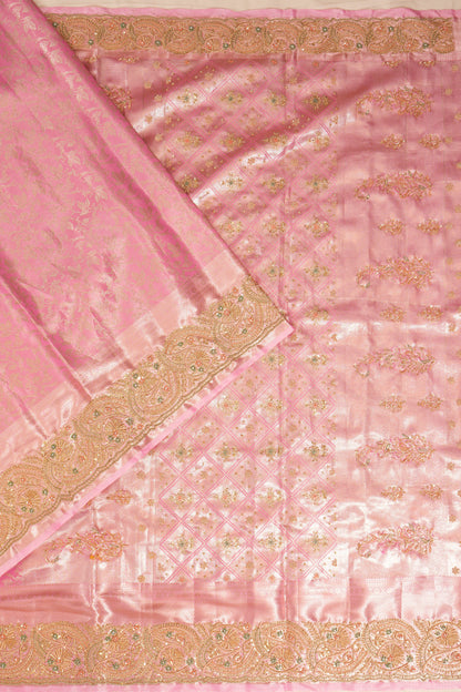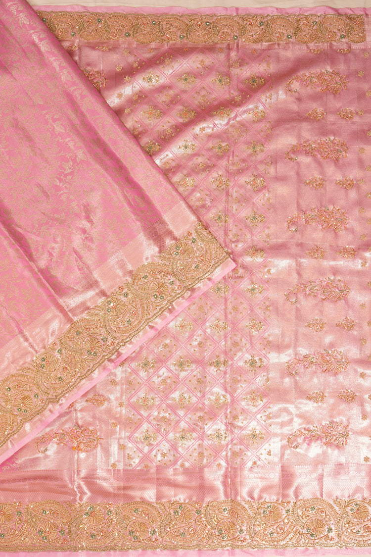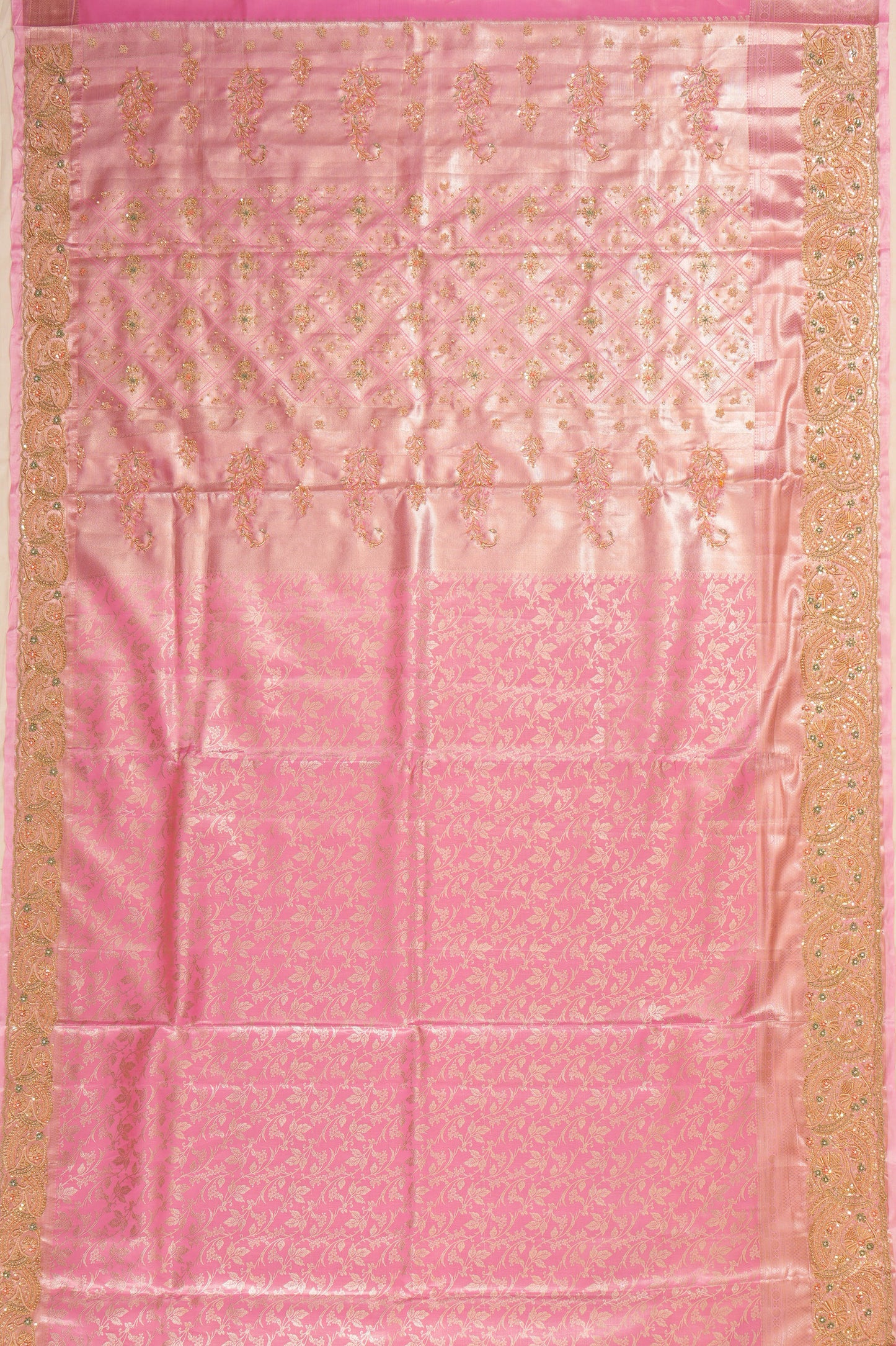 Kanchipuram Silk Jaal Pink Saree With Zardosi Border