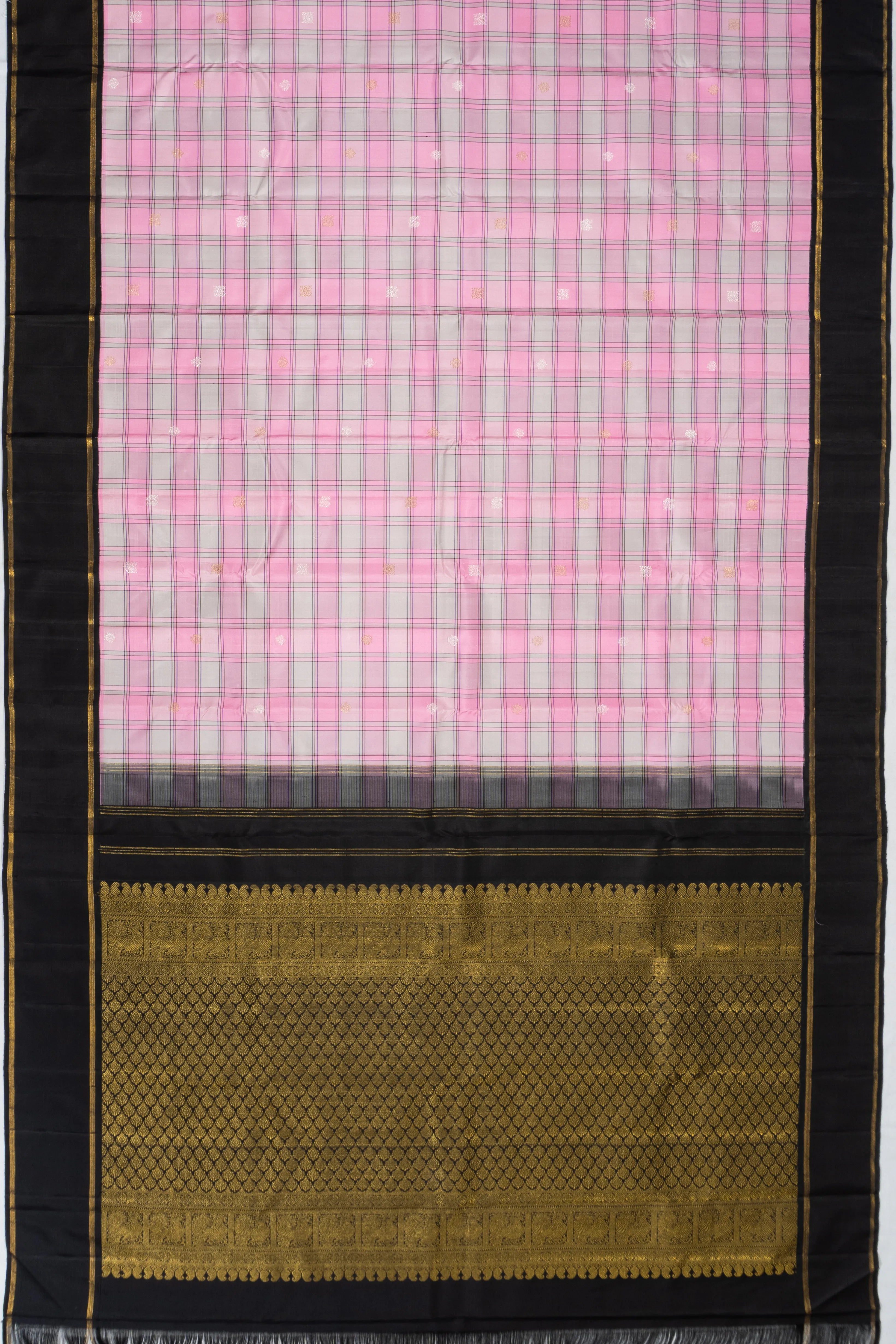 Kanchipuram Silk Checks And Butta Baby Pink Saree