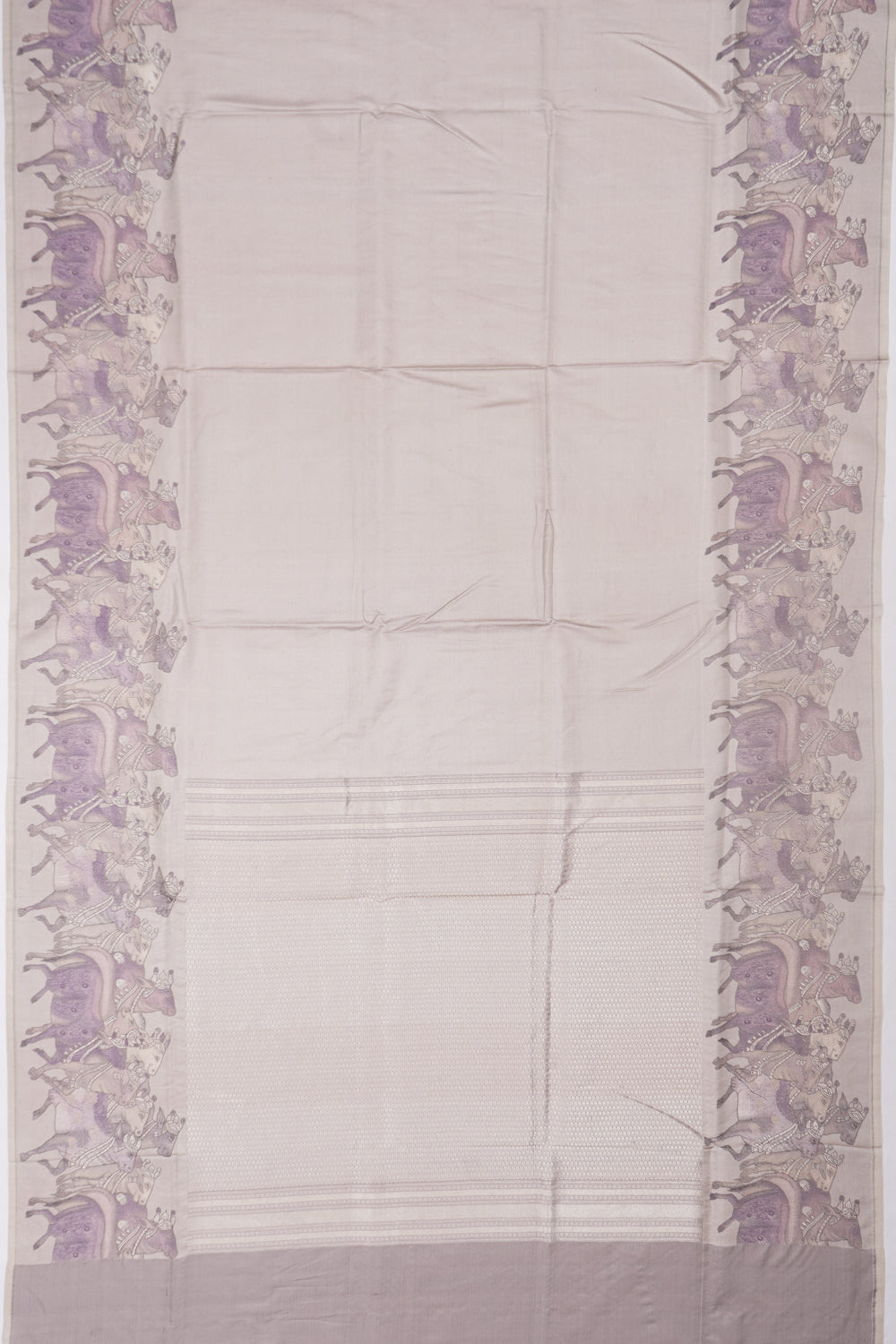 Handpicked by Kankatala, a brand renowned for carefully sourced, handwoven sarees since 1943, this saree embodies generations of skilled craftsmanship The medium border features a self zari border type, while the body is adorned with a beautiful brocade pattern Perfect for weddings and special occasions, this grey saree is a testament to Kankatala's commitment to offering the finest drapes