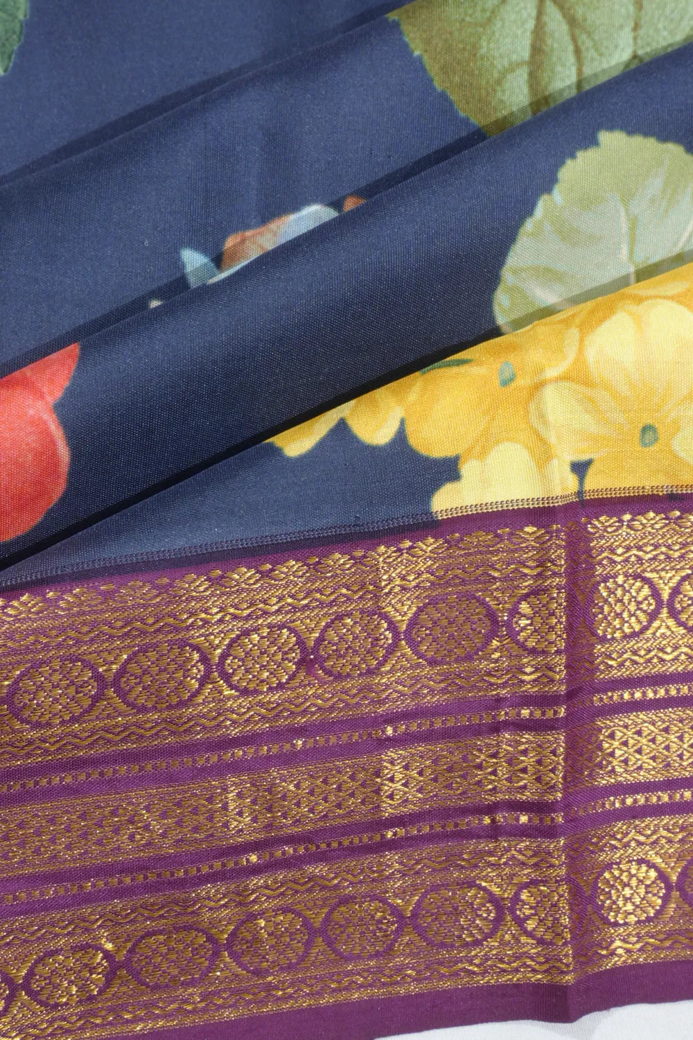 Experience the legacy of Kankatala, handpicking the finest drapes since 1943. This exquisite Kanchipuram Silk Saree features a beautiful floral print and a contrast zari small border, perfect for weddings Our weavers bring designs to life with meticulous care, ensuring each saree is fit for a queen