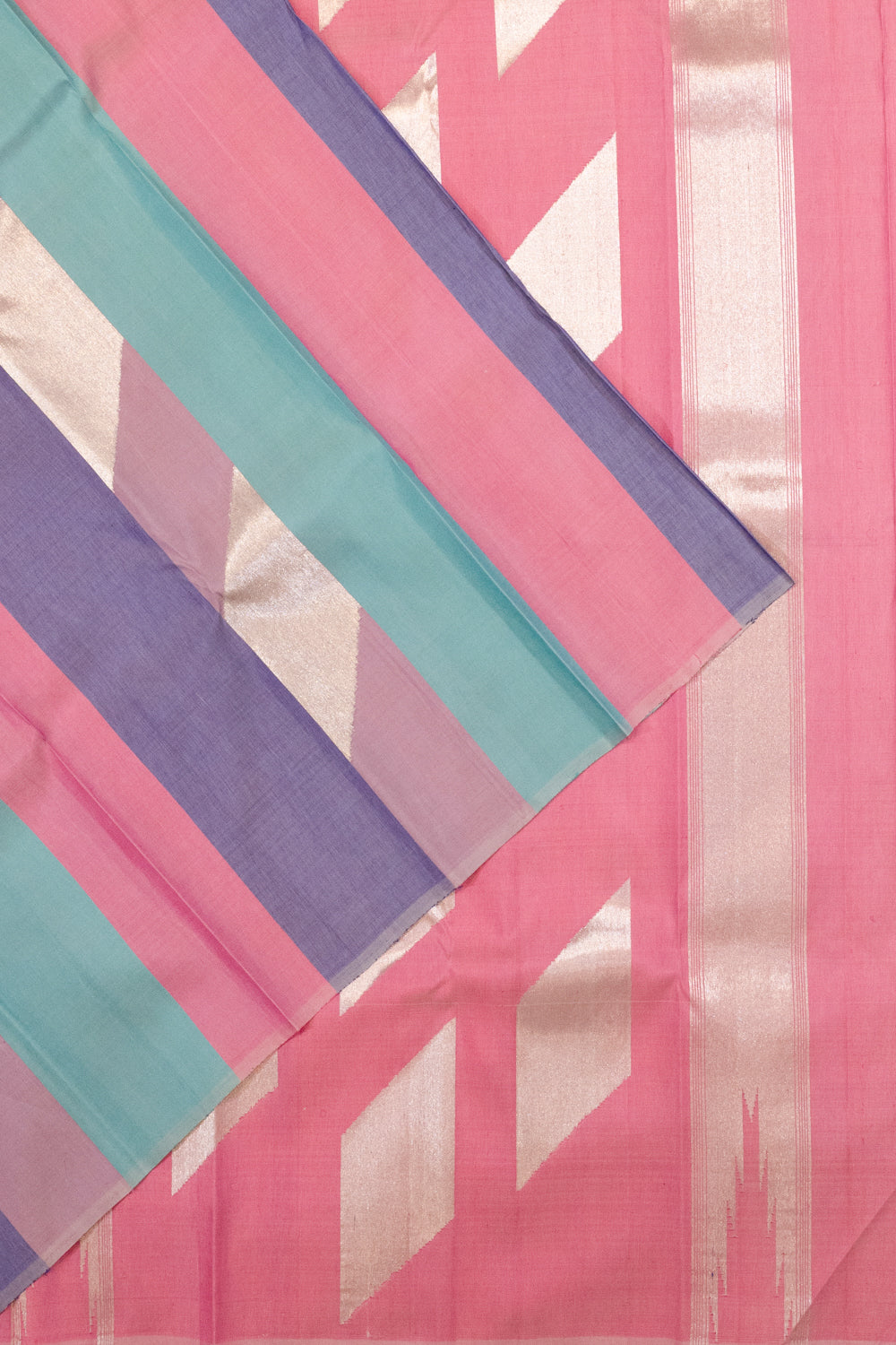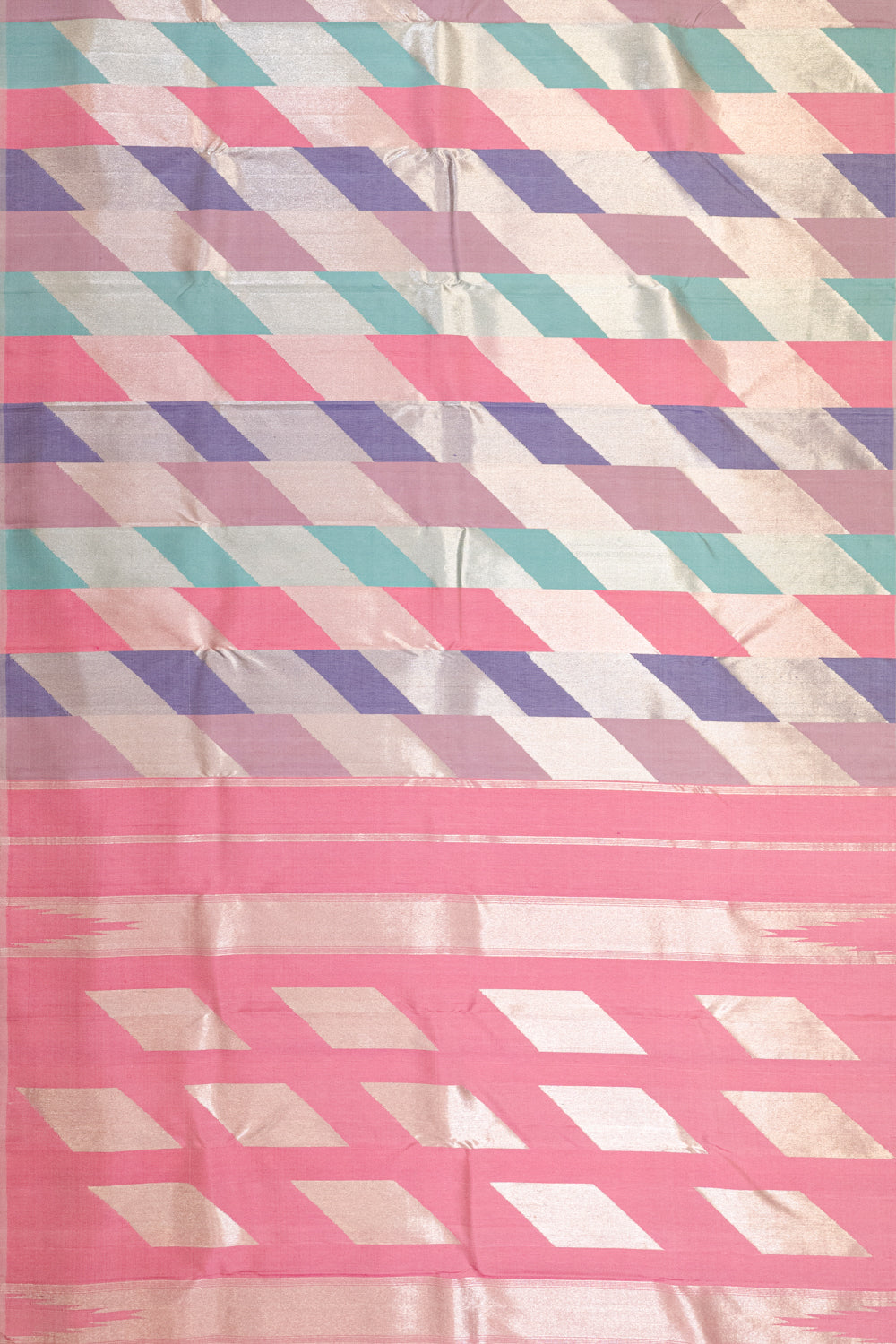 Kanchipuram Silk Geometrical Lines Pink Saree