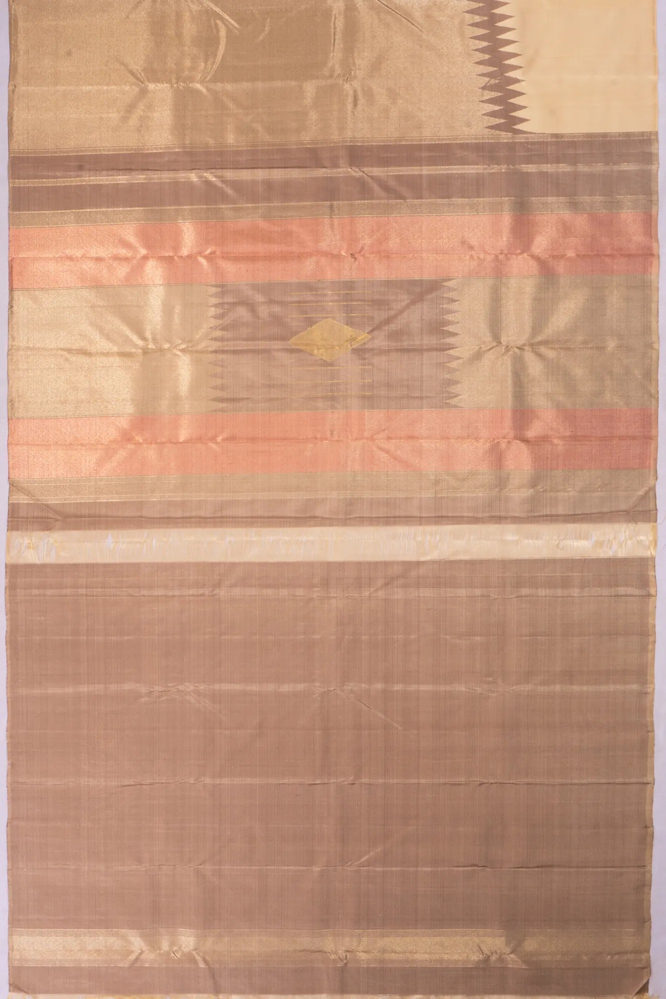Kanchipuram Silk Raising Temple Lines Beige Saree