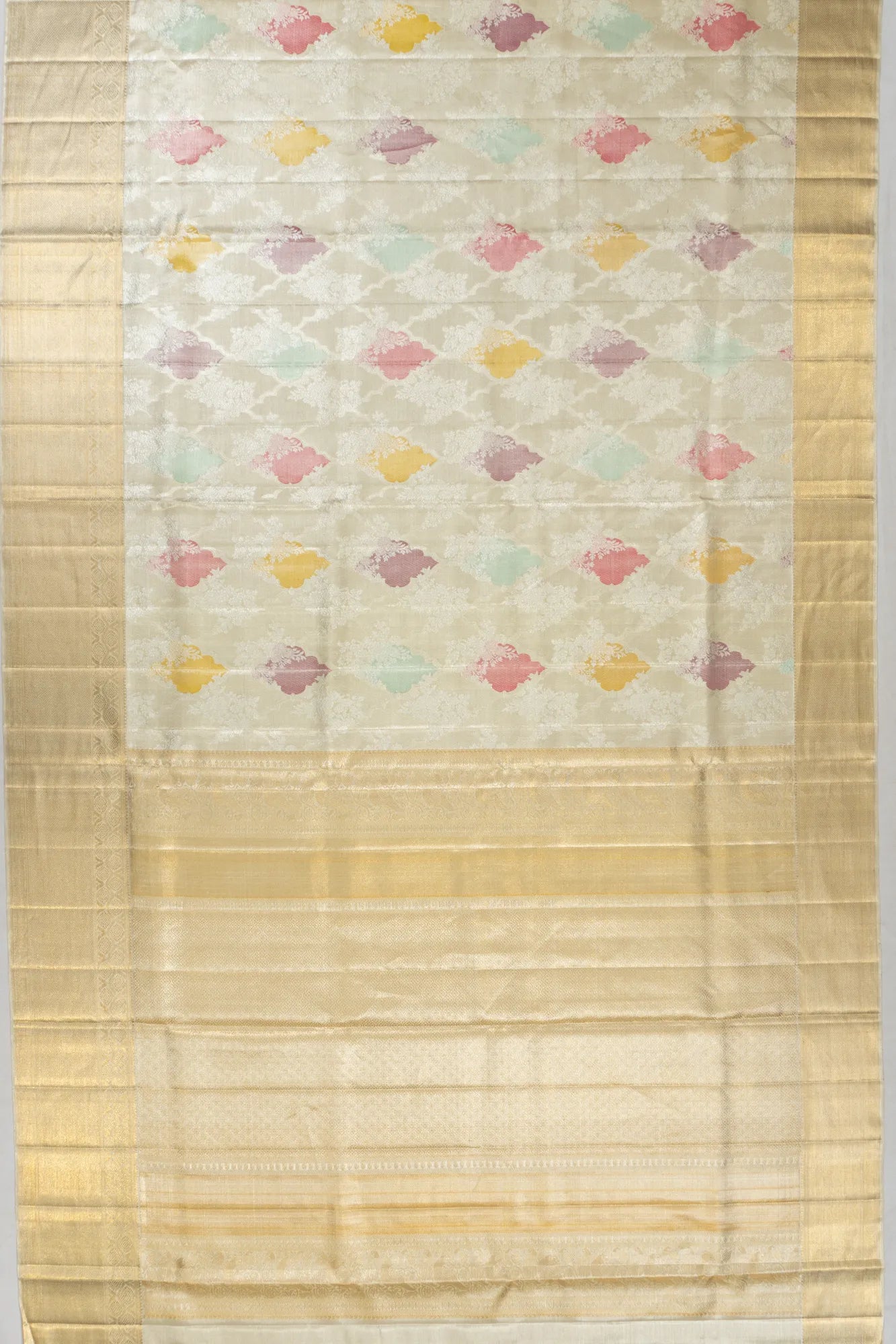 Kanchipuram Silk Tissue Brocade Silver Saree
