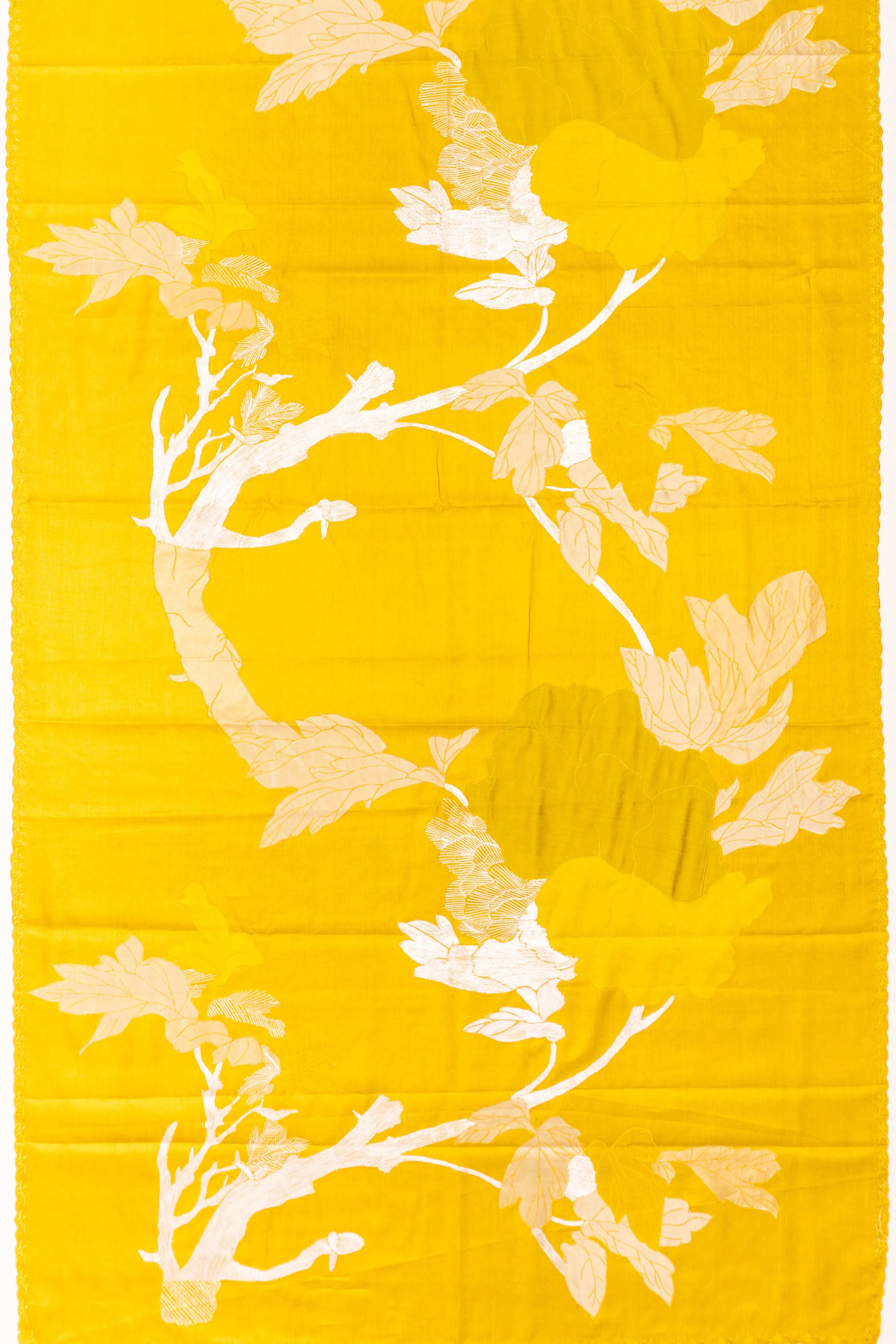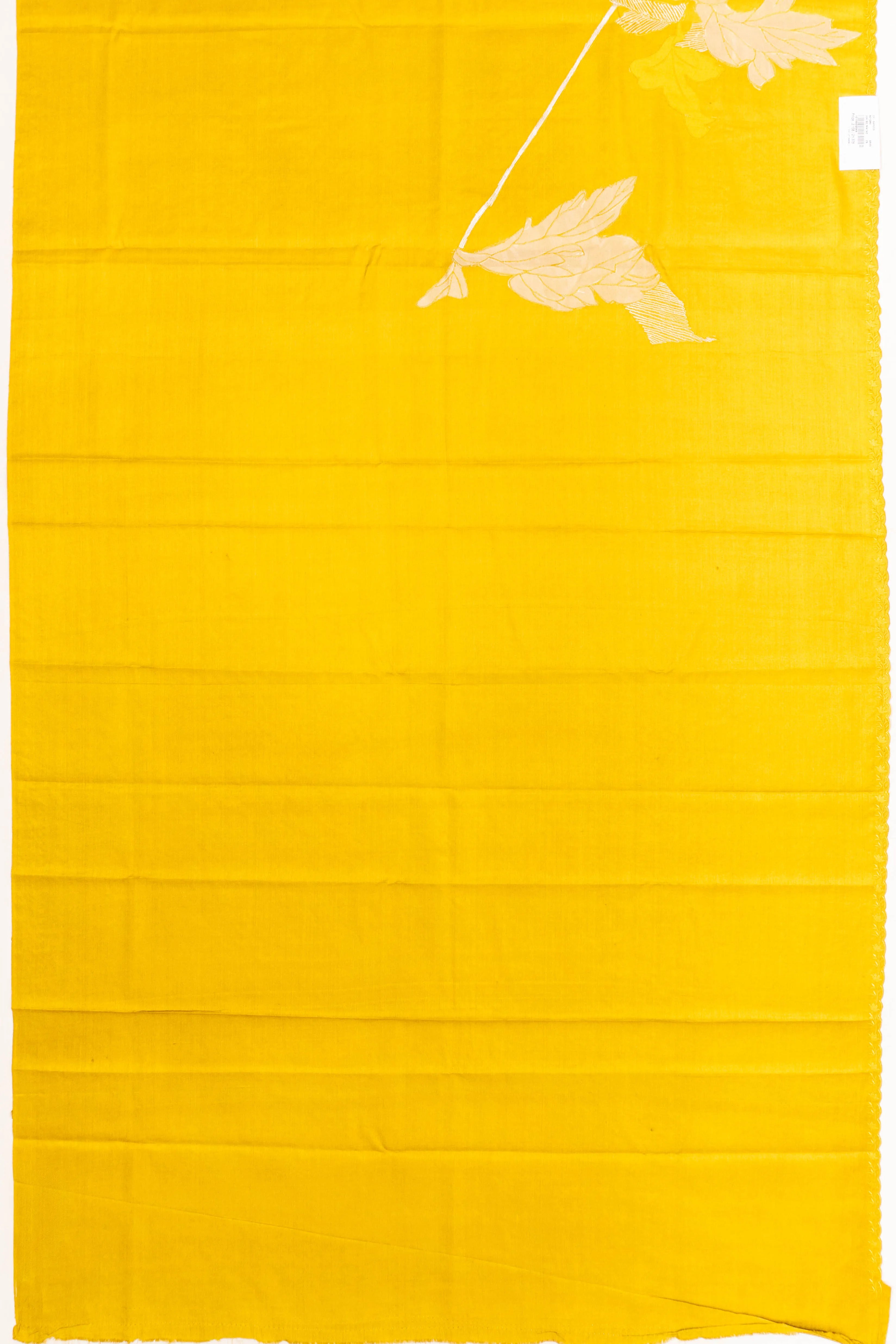 The saree features a unique scallop edge without a traditional border, adding a touch of sophistication to its design
