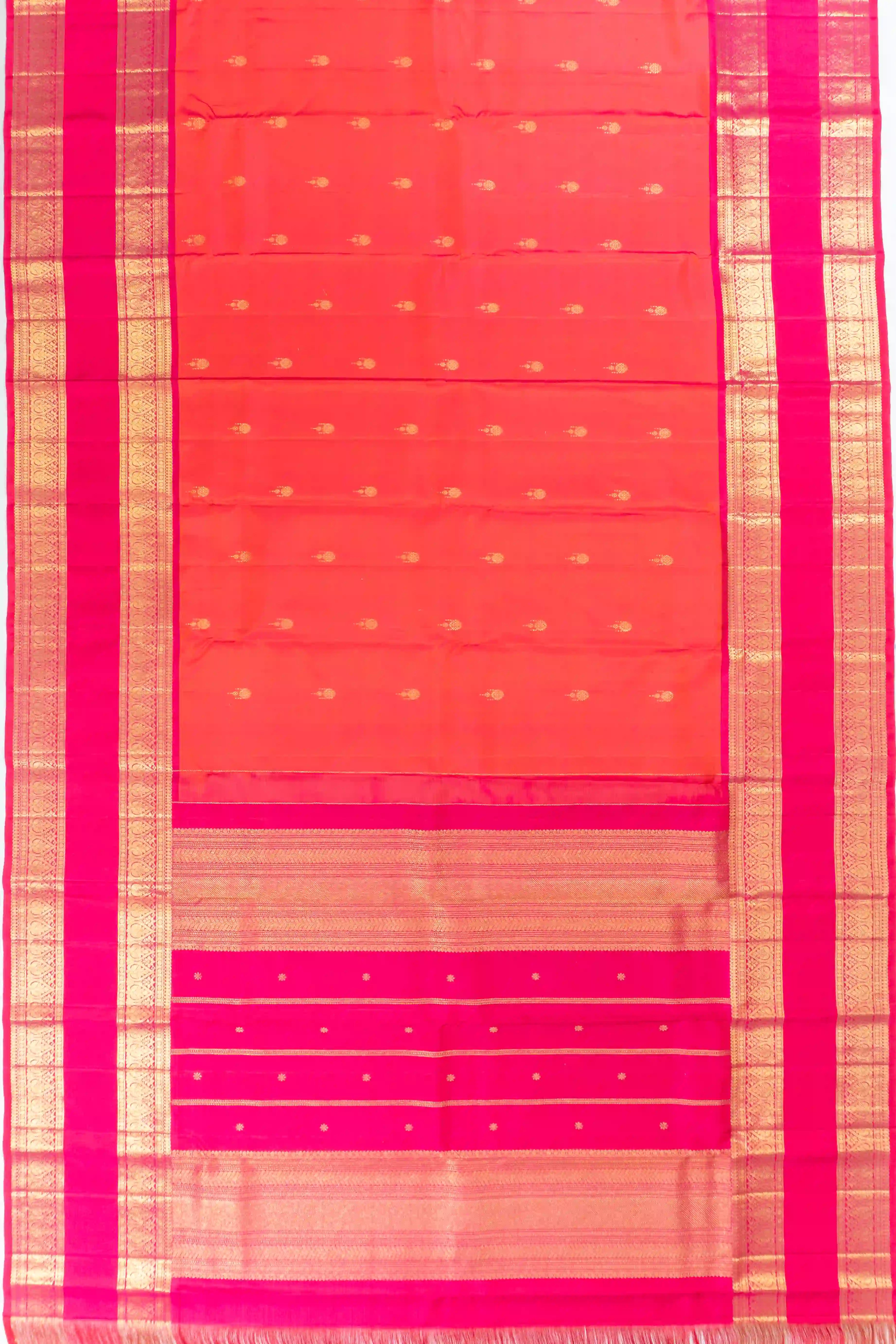 Kanchipuram Silk Butta Orange Saree With Rettai Pettu Border