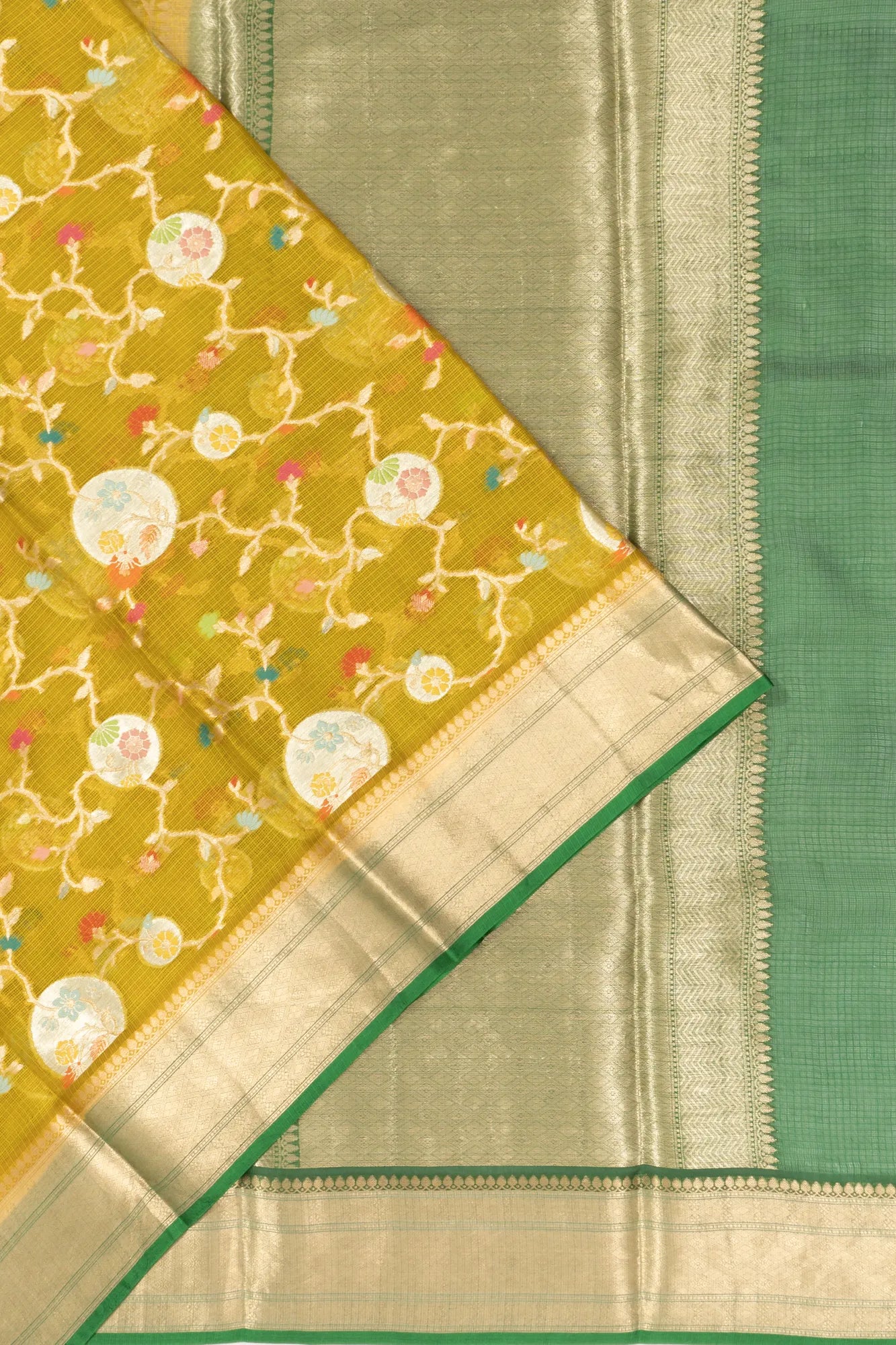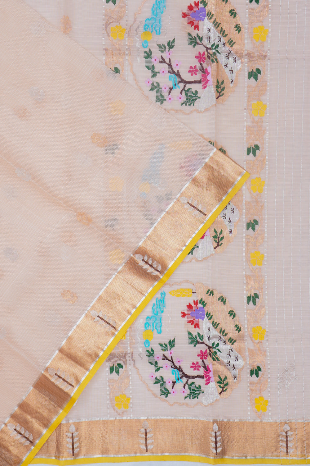 Kota sarees should be dry cleaned only and stored in muslin cloth (not airtight plastic). If folded, refold every 3-4 months to avoid permanent creases. You can also roll the saree for storage. Keep it in a cool, dry place away from direct sunlight. -