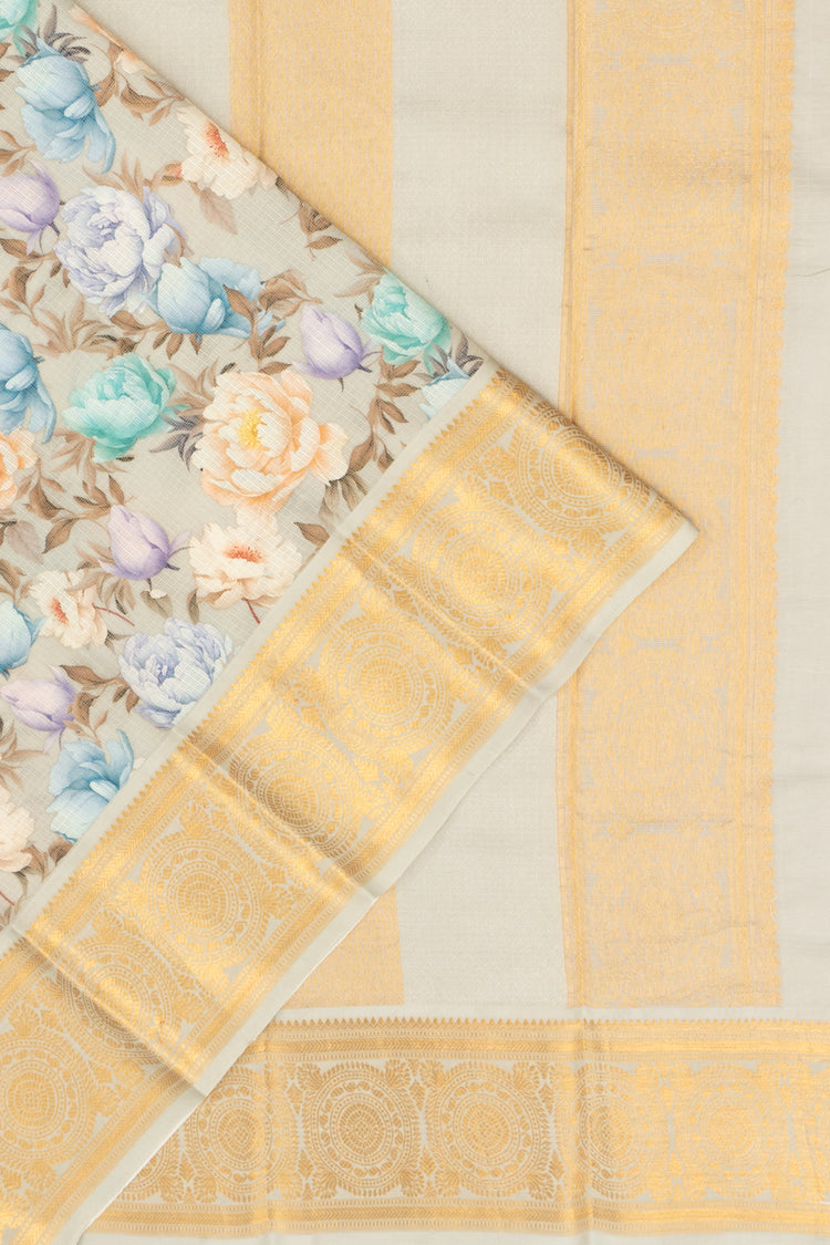 Kanchi Soft Kota Silk Floral Printed Pastel Grey Saree