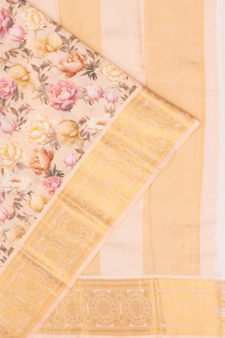 Kanchi Soft Kota Silk Floral Printed Peach Saree