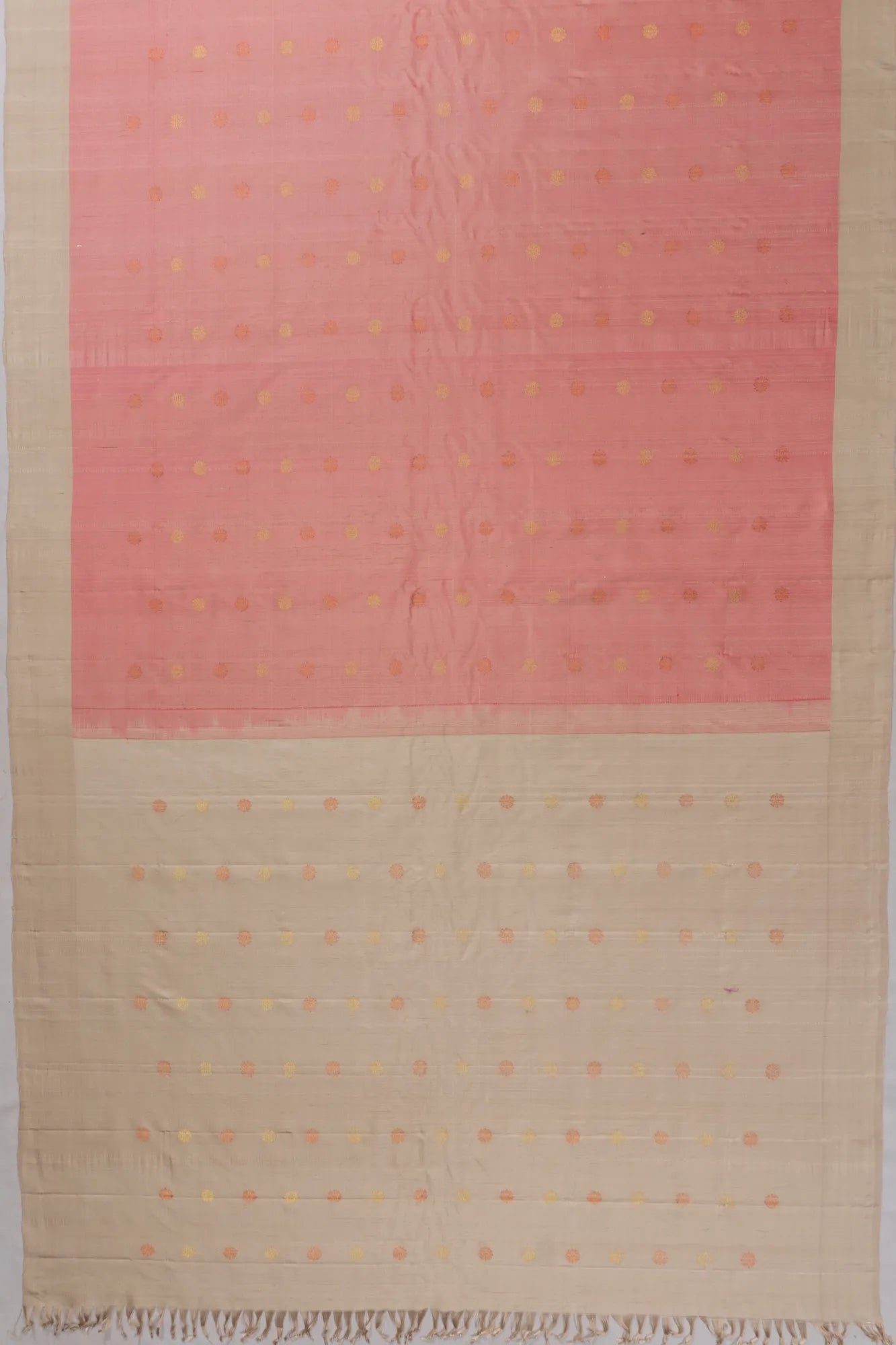 Its small, plain beige border provides a subtle yet striking contrast, highlighting the saree's intricate design