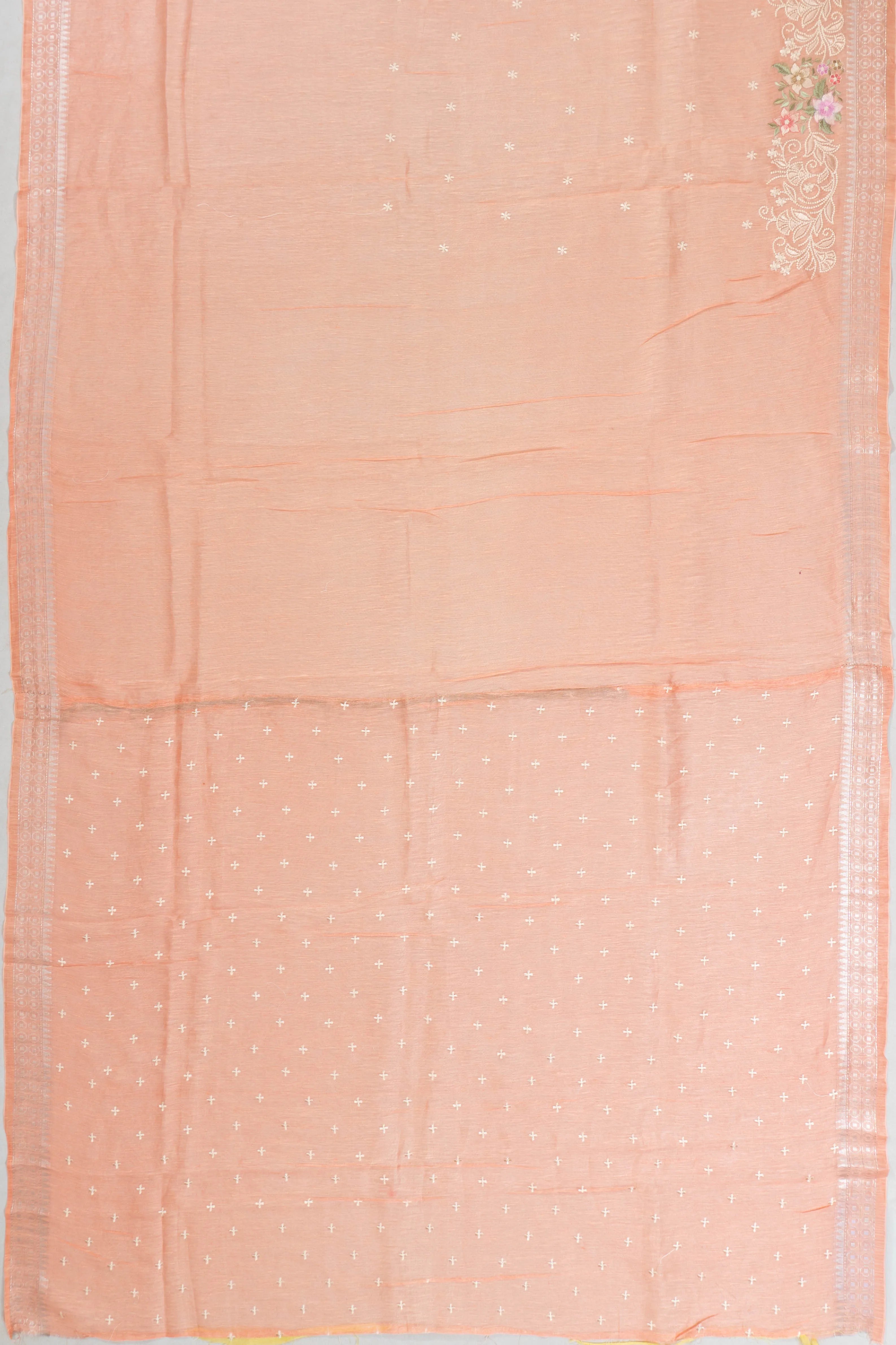 Linen Embroidery Butta Pastel Orange Saree