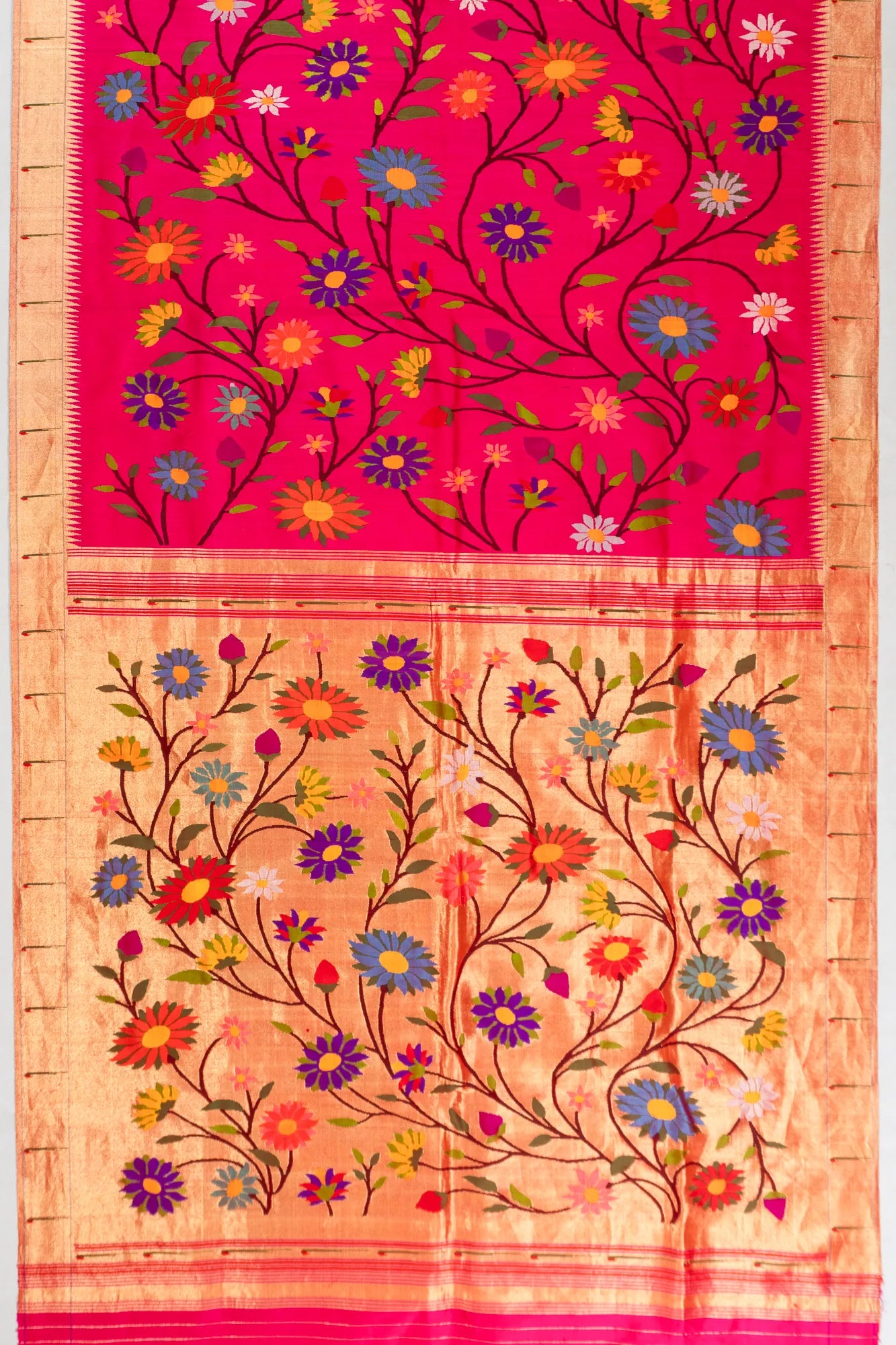 Paithani Silk All Over Jaal Rani Pink Saree With Single Muniya Border