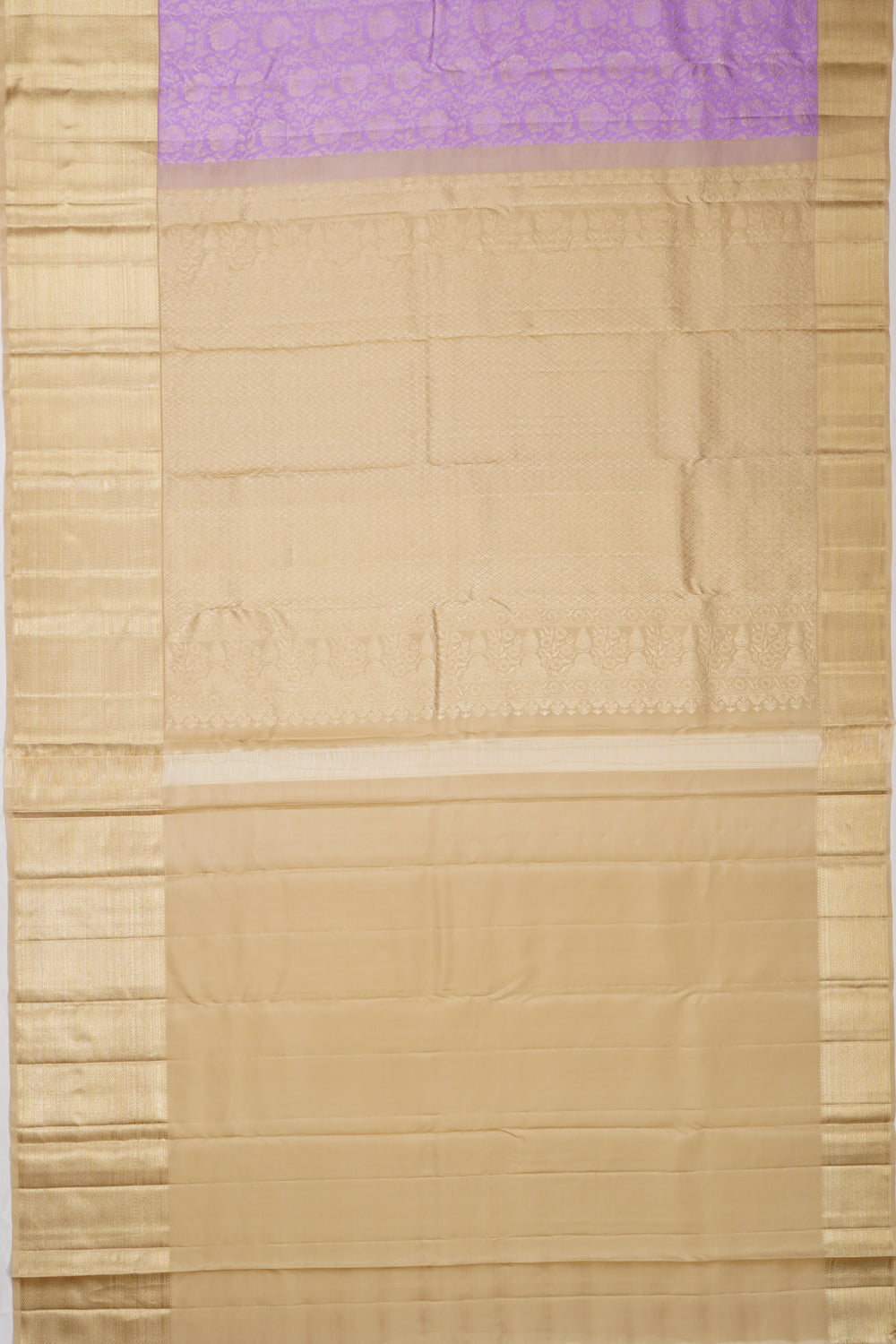 Adorned with a luxurious gold zari floral brocade, the body of the saree radiates a graceful charm that captures the beauty of heritage craftsmanship