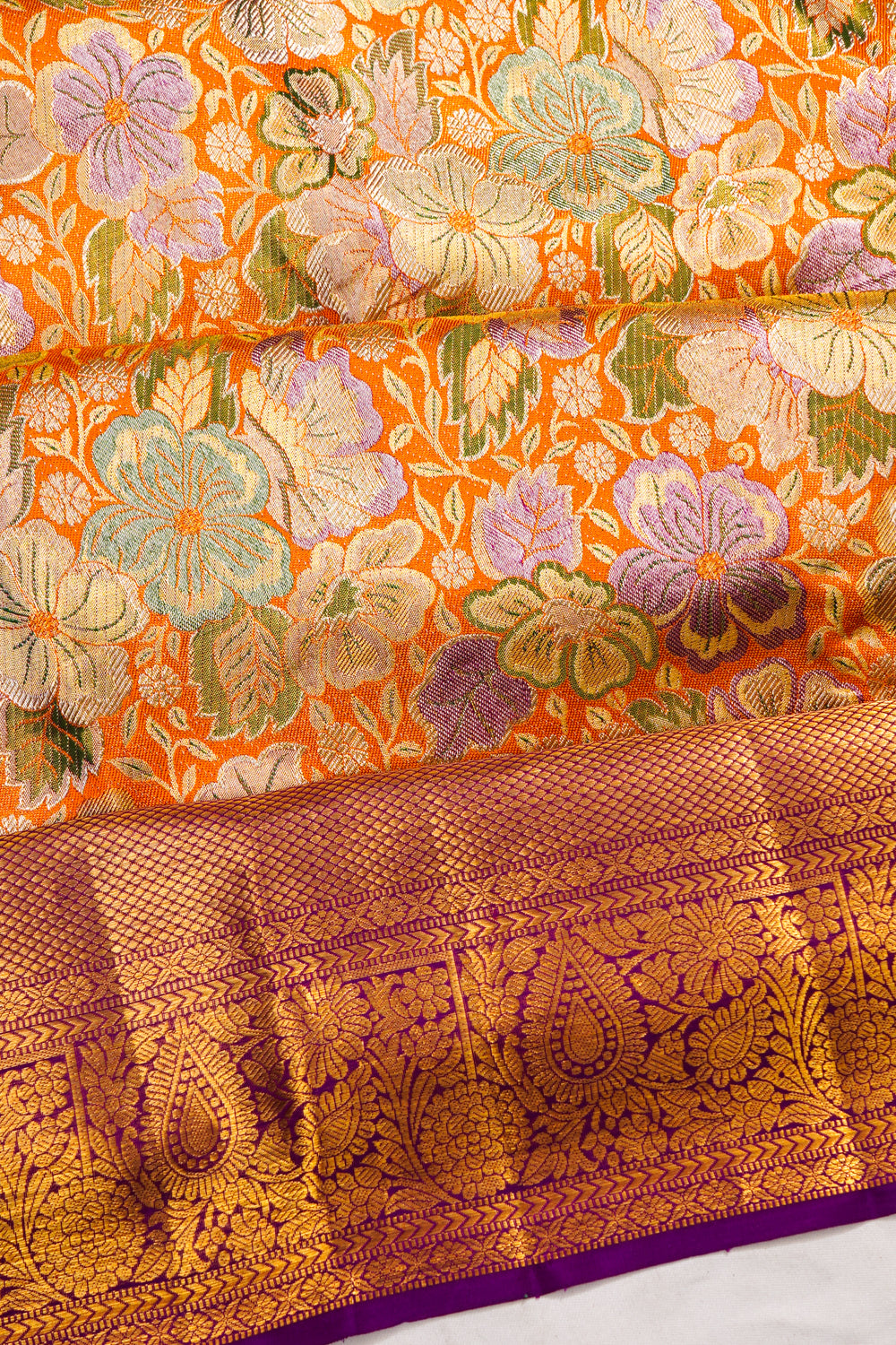 Kanchipuram Silk Tissue Brocade Orange Saree