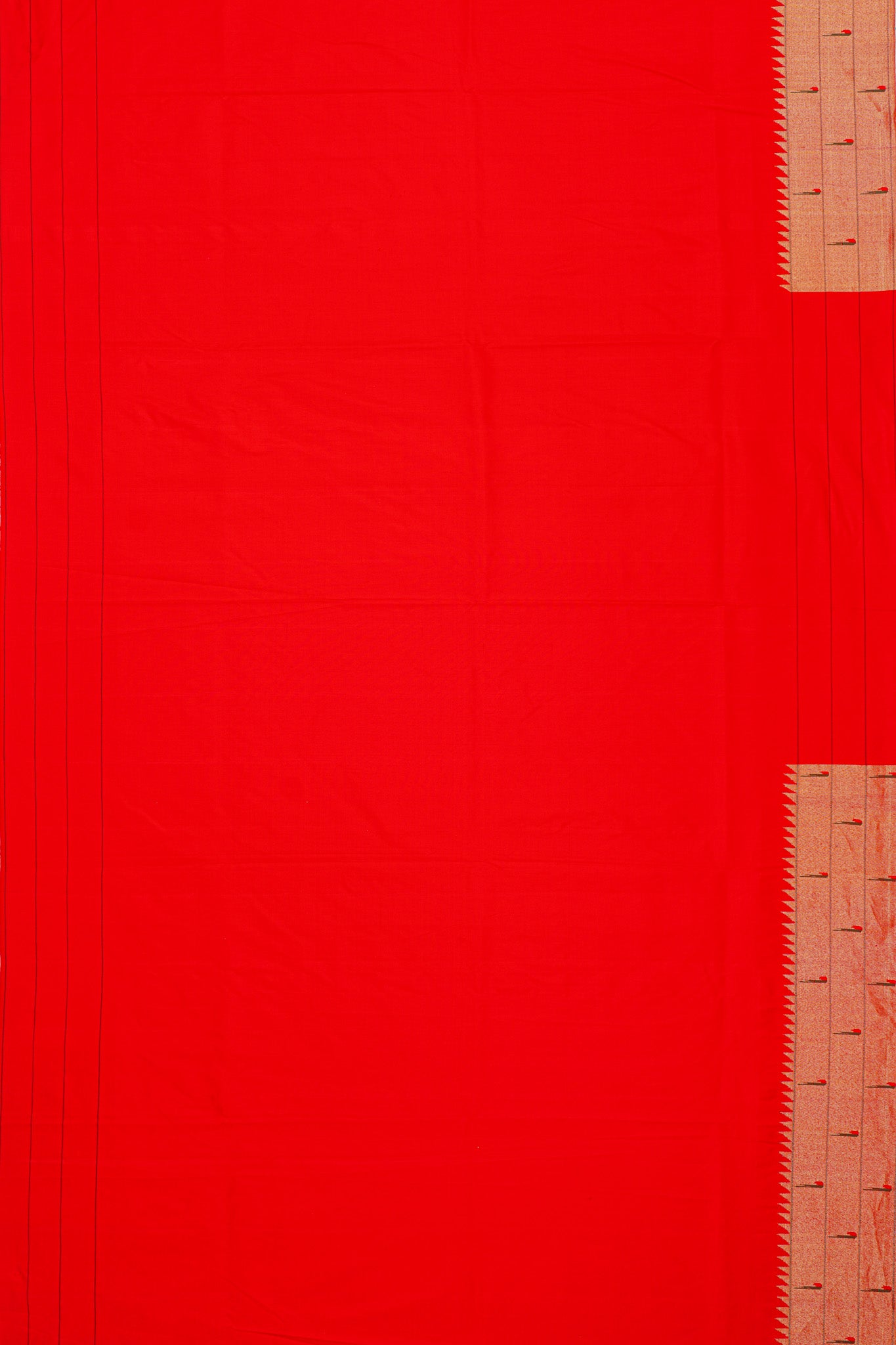 Paithani Silk Butta Red Saree With Triple Muniya Border
