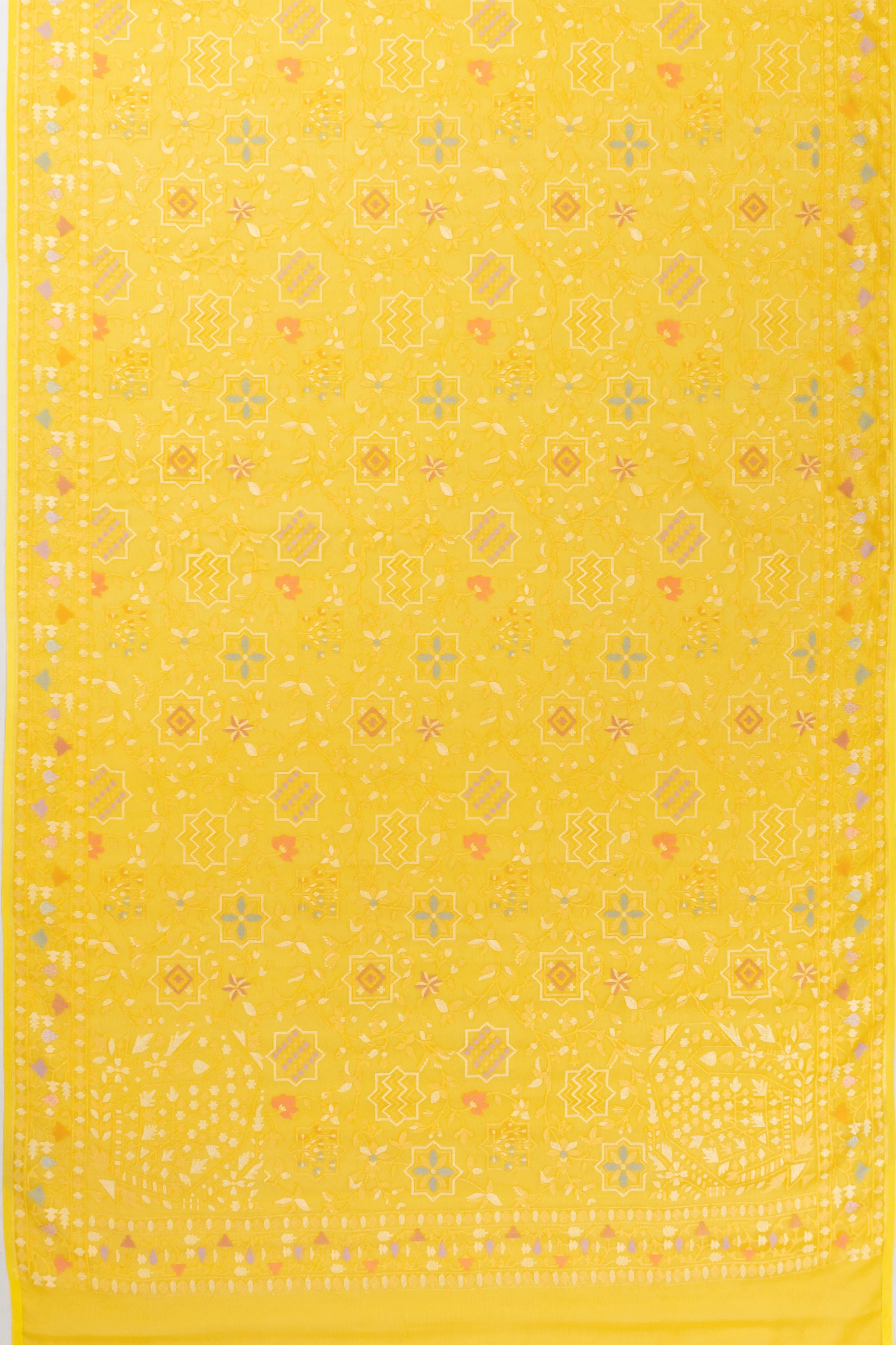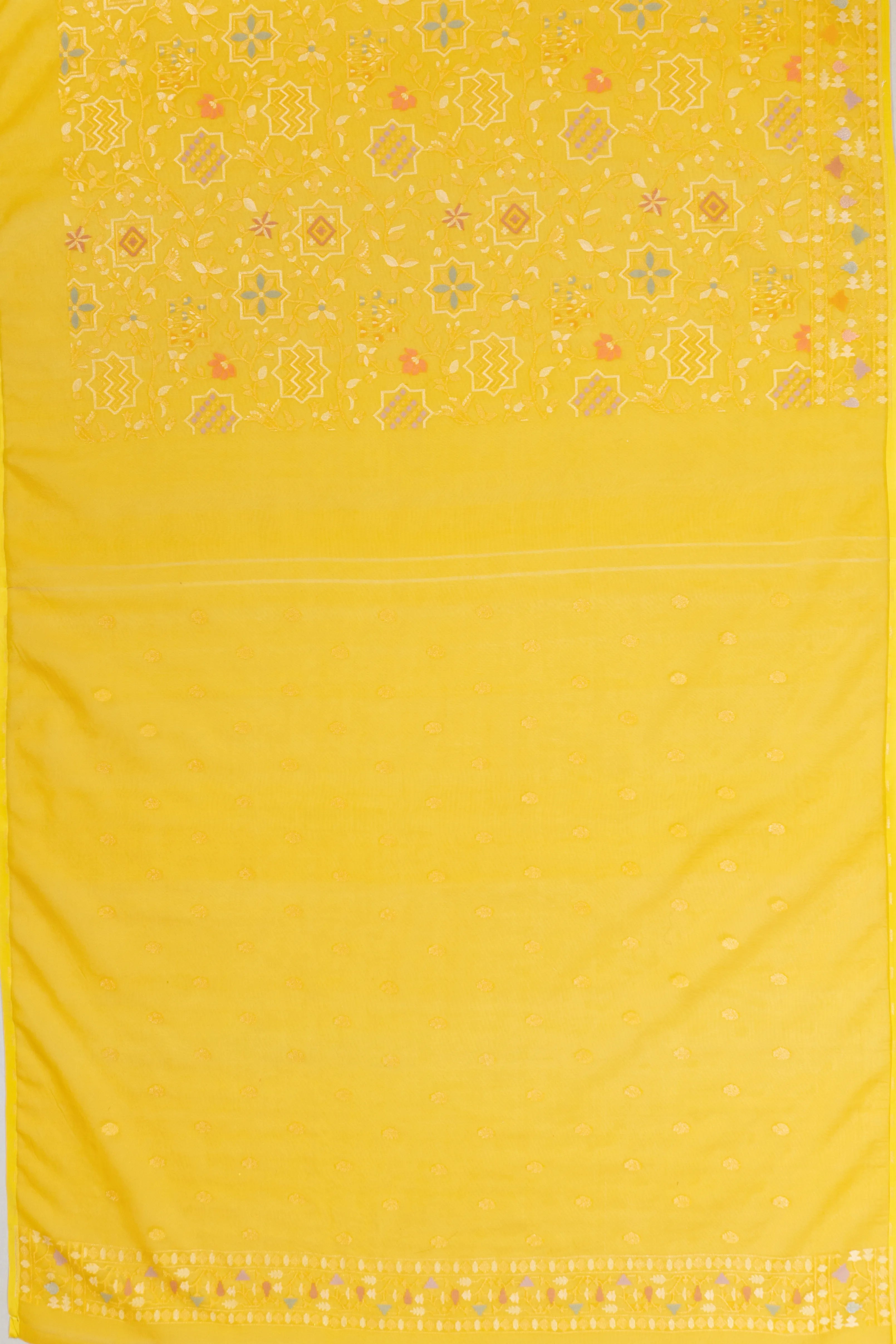 Adorned with delicate floral Brocade motifs, the vibrant yellow body radiates warmth and elegance, making it a perfect choice for those who appreciate the finer details