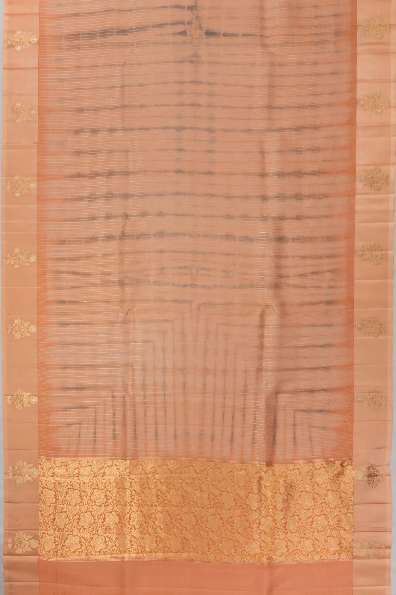 Banarasi Kora Organza Vertical Lines Pastel Orange Saree