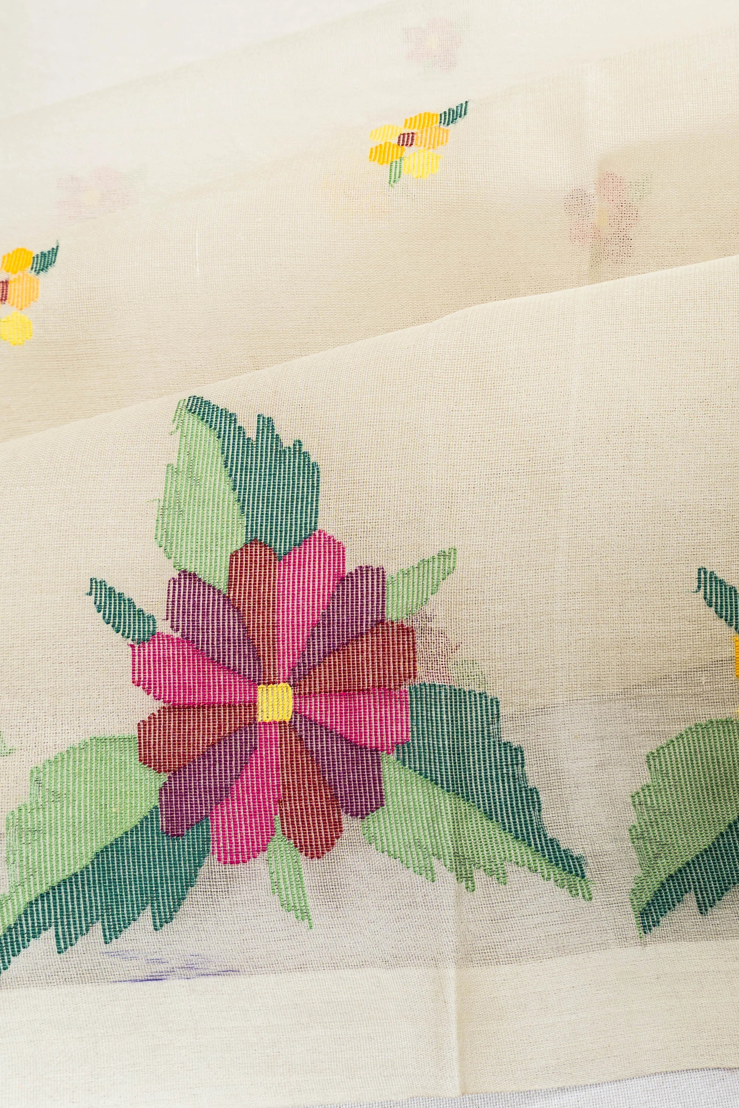 Dhakai Kora Organza Jamdani Butta Off White Saree
