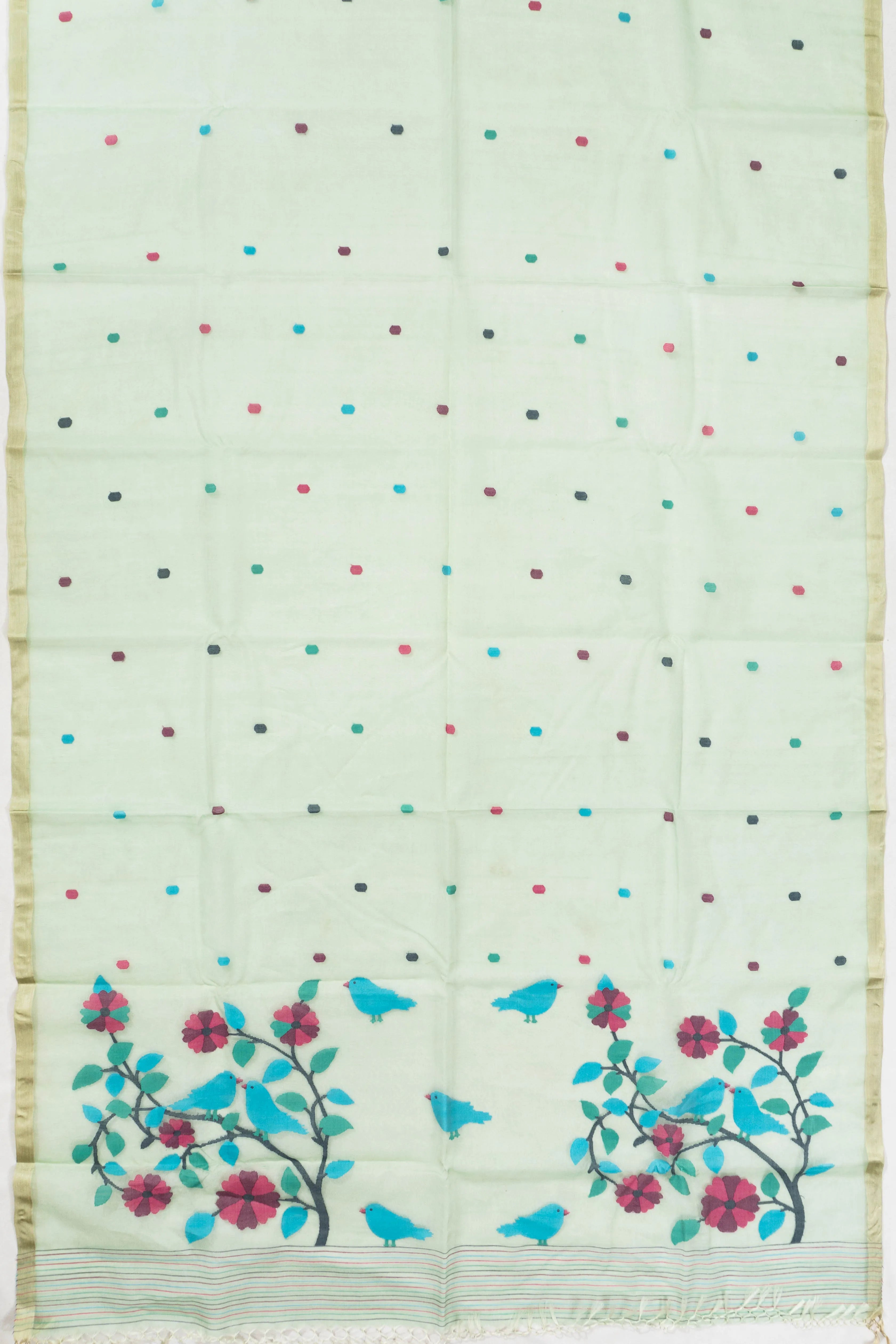 Dhakai Kora Organza Jamdani Butta Sea Green Saree