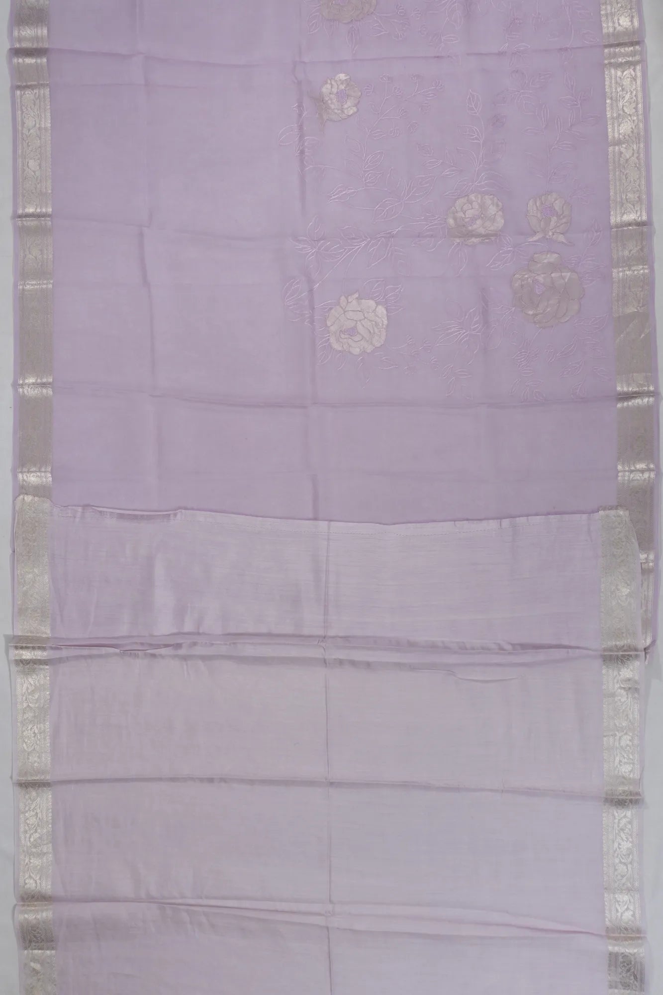 The saree features a self silver zari floral vines border, adding a touch of refined luxury that enhances its sophisticated charm
