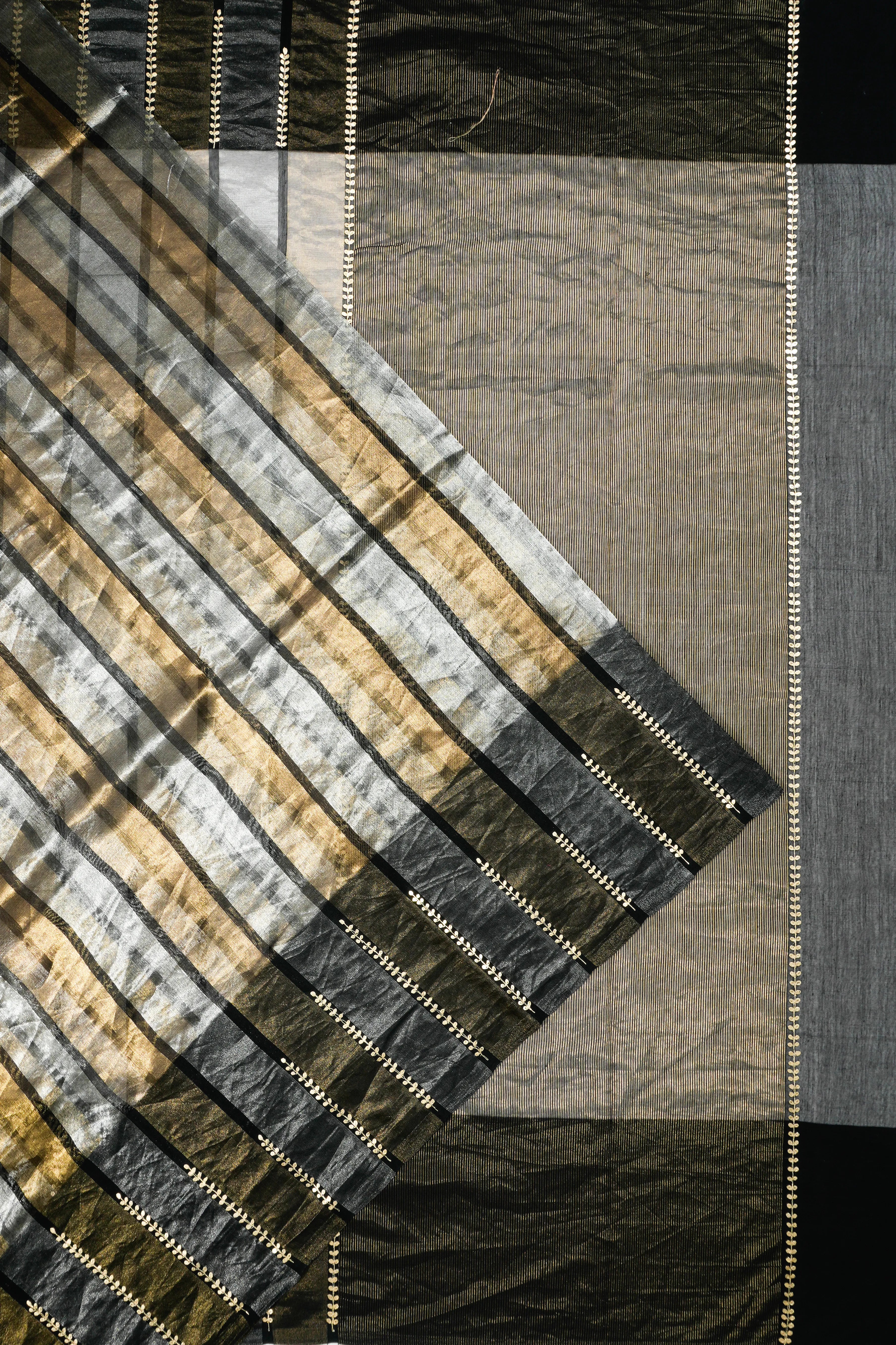 Organza Tissue Vertical Lines Black Saree