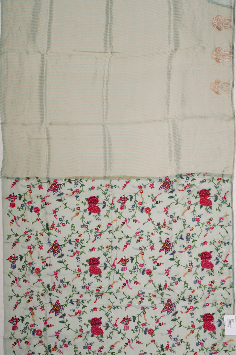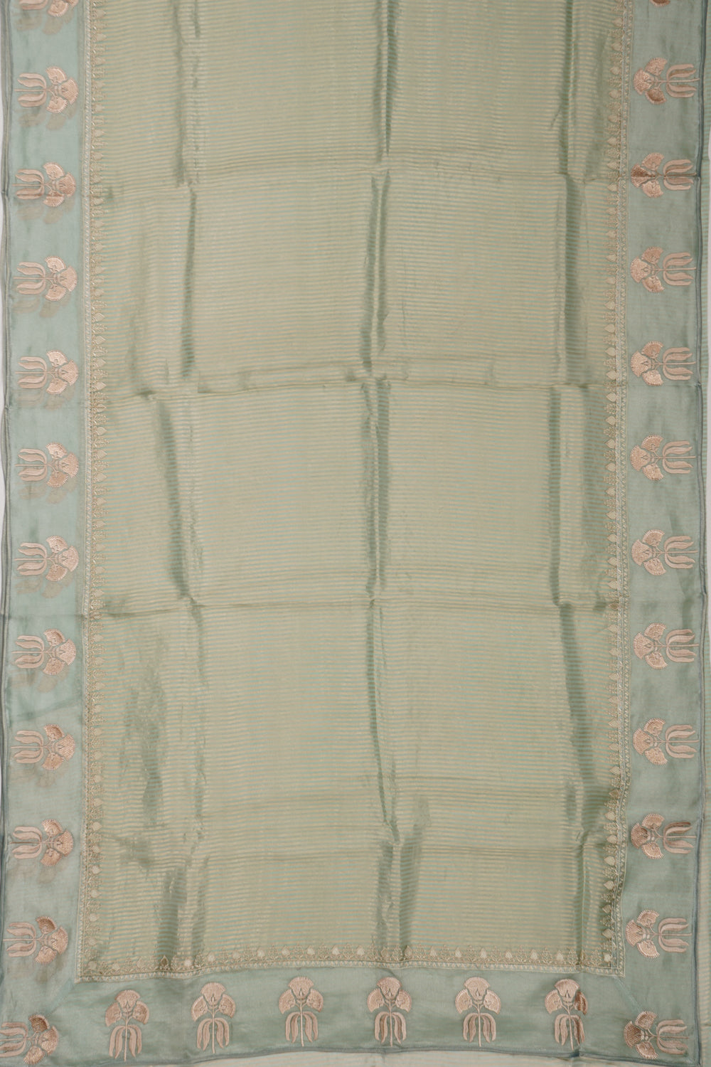 Organza Tissue Vertical Lines Green Saree With Embroidery Border