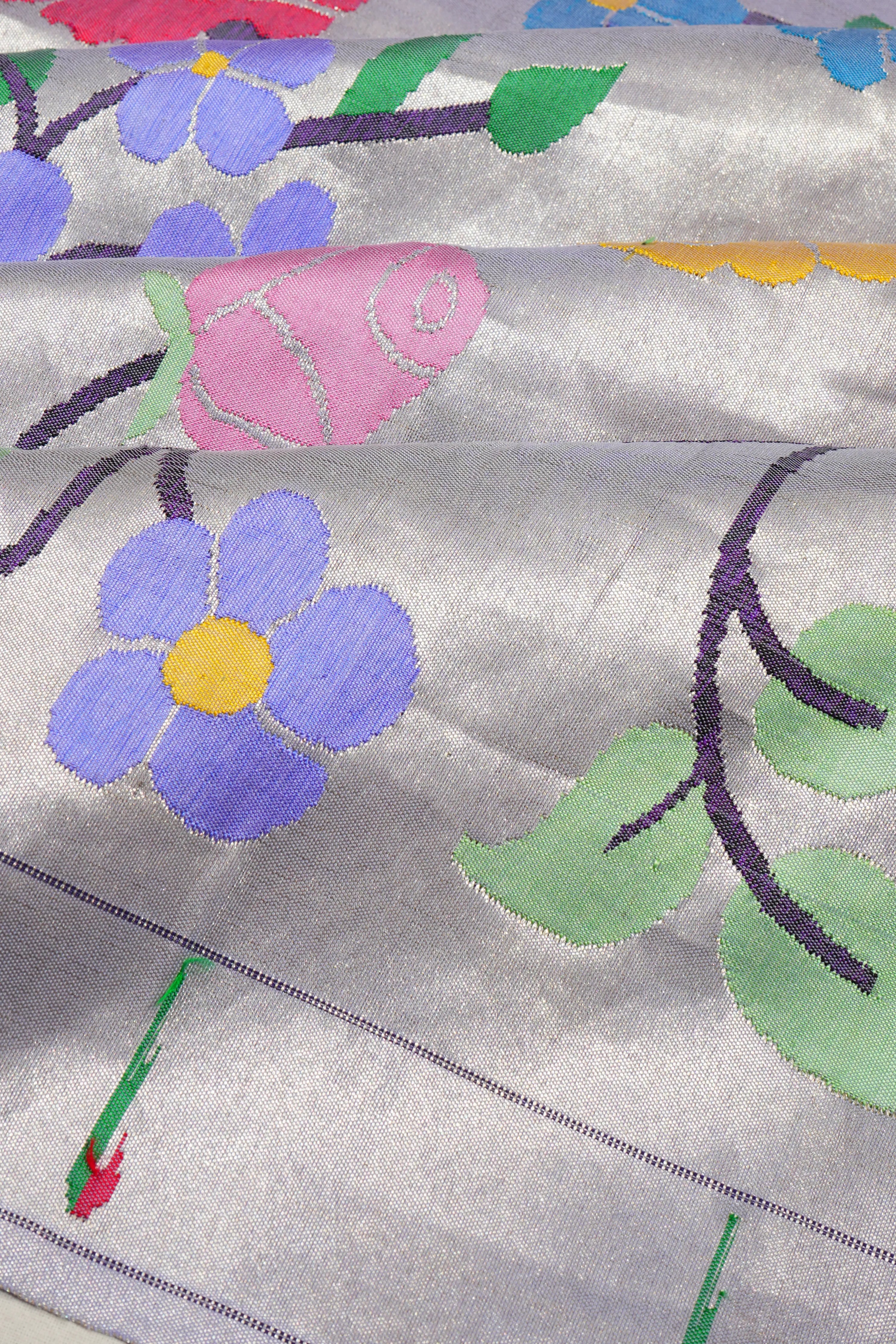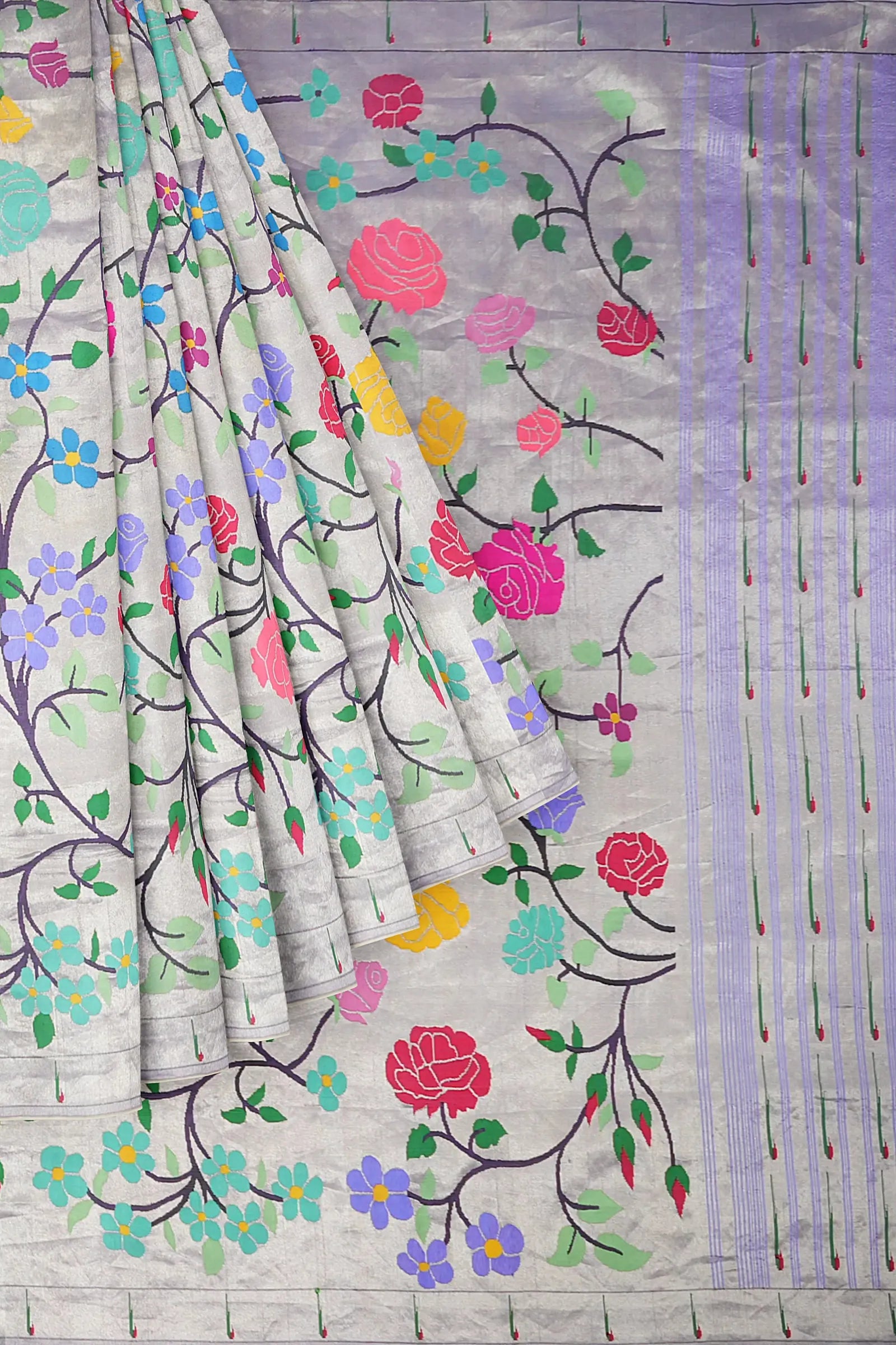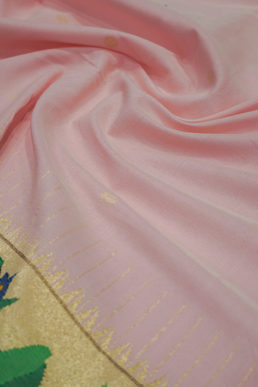 The romantic Asawali border celebrates nature through intricate floral vine motifs, characterized by delicate creepers, jasmine blossoms, and rose patterns that seem to bloom across the silk canvas. These borders require exceptional skill to achieve the flowing, organic appearance that makes each piece feel like a garden captured in silk. The Asawali design particularly complements blue paithani saree and pink paithani saree colorways, creating pieces that embody feminine grace.
