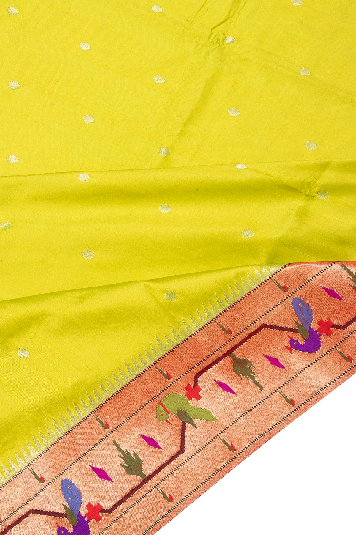 The charming Muniya border features elegant parrot motifs that can appear as single, double, or triple parrot arrangements. These green paithani saree and other color variants with Muniya borders represent the perfect entry point into authentic Paithani ownership. The parrots, traditionally woven in green bodies with distinctive red beaks, create a rhythmic pattern that dances along the saree's edge. Our collection includes both classic color combinations and contemporary interpretations that appeal to modern sensibilities.