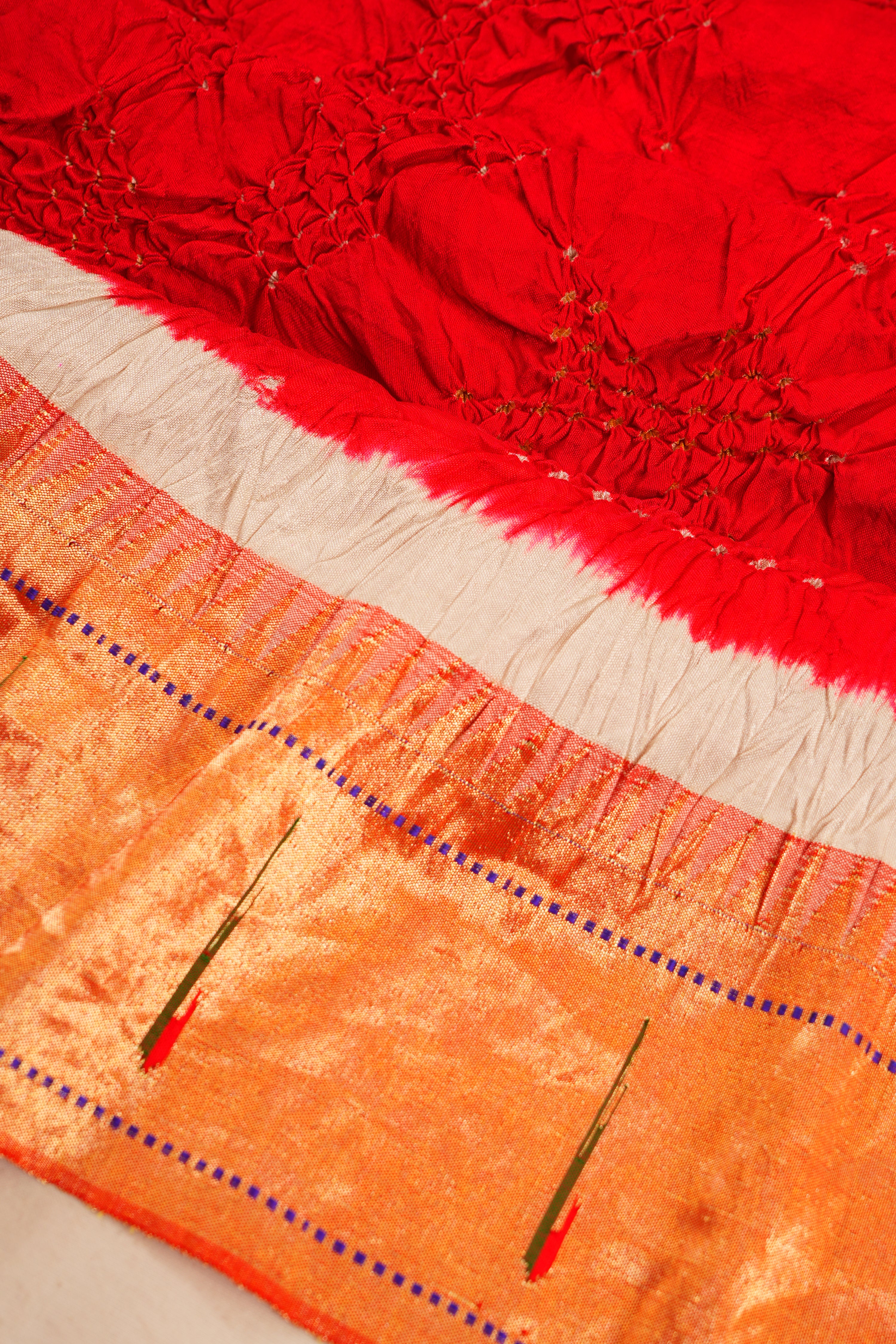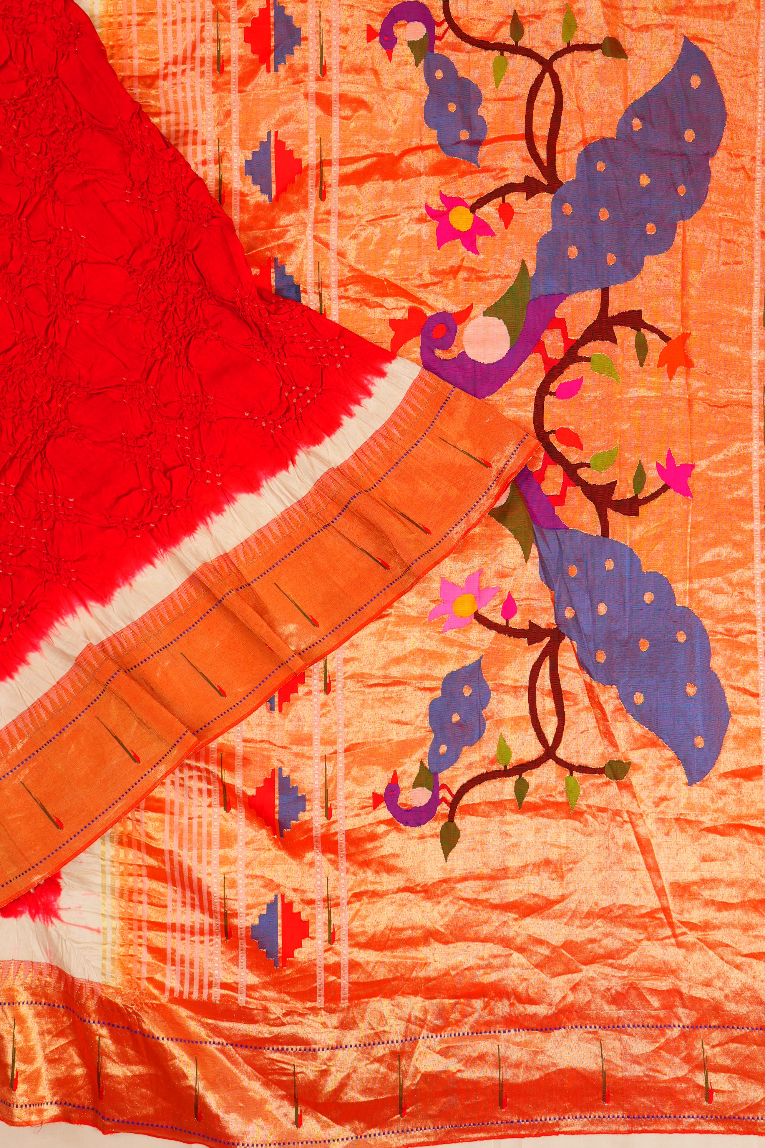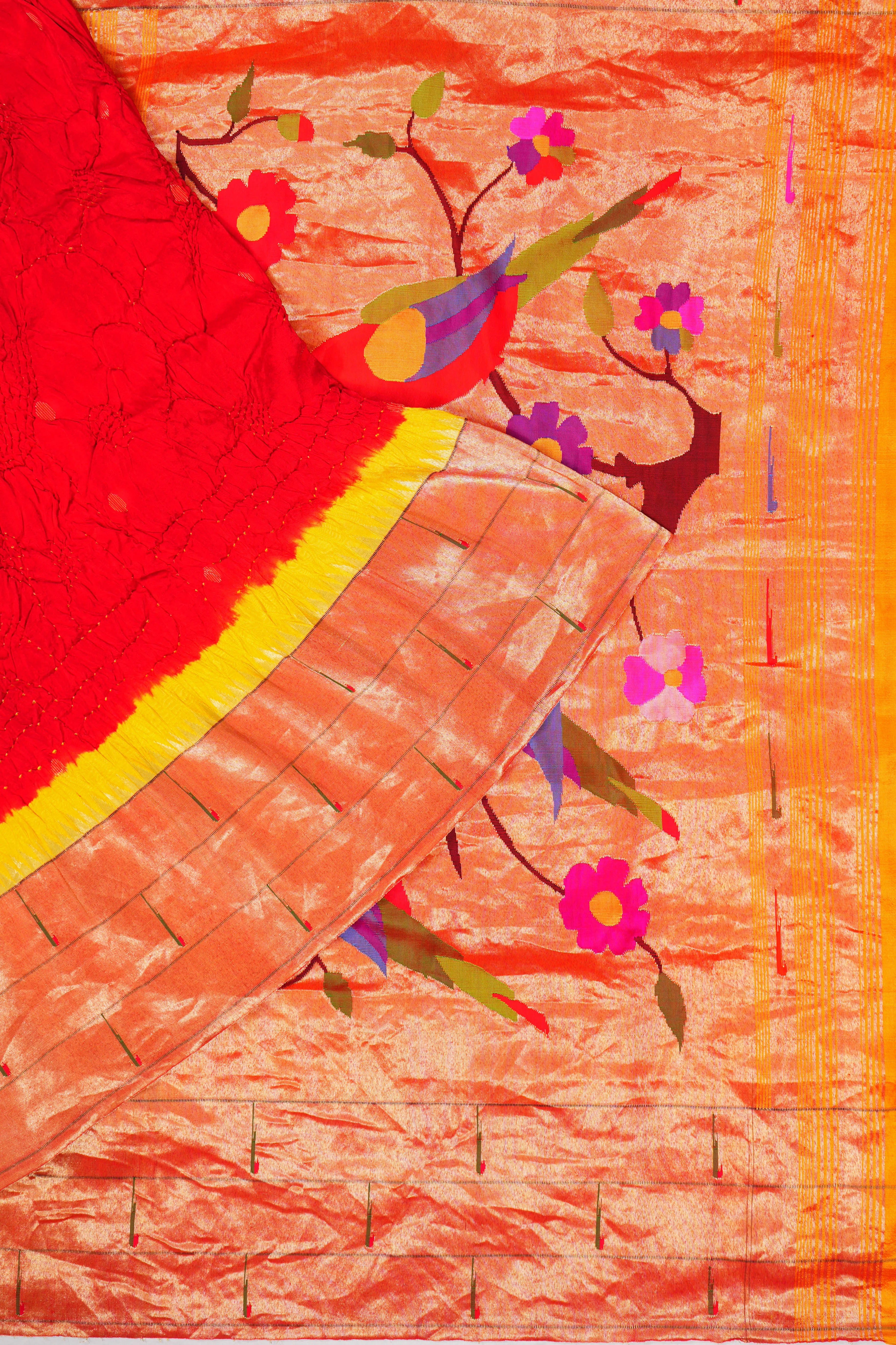 The most crucial skill we've developed over eighty years is the ability to instantly verify Paithani authenticity. The defining characteristic of a genuine paithani saree original piece is its identical appearance on both front and back - a result of the ancient tapestry weaving technique using interlocking weft patterns. This creates the stark color contrasts and perfect motif definition that make Paithani sarees instantly recognizable.
