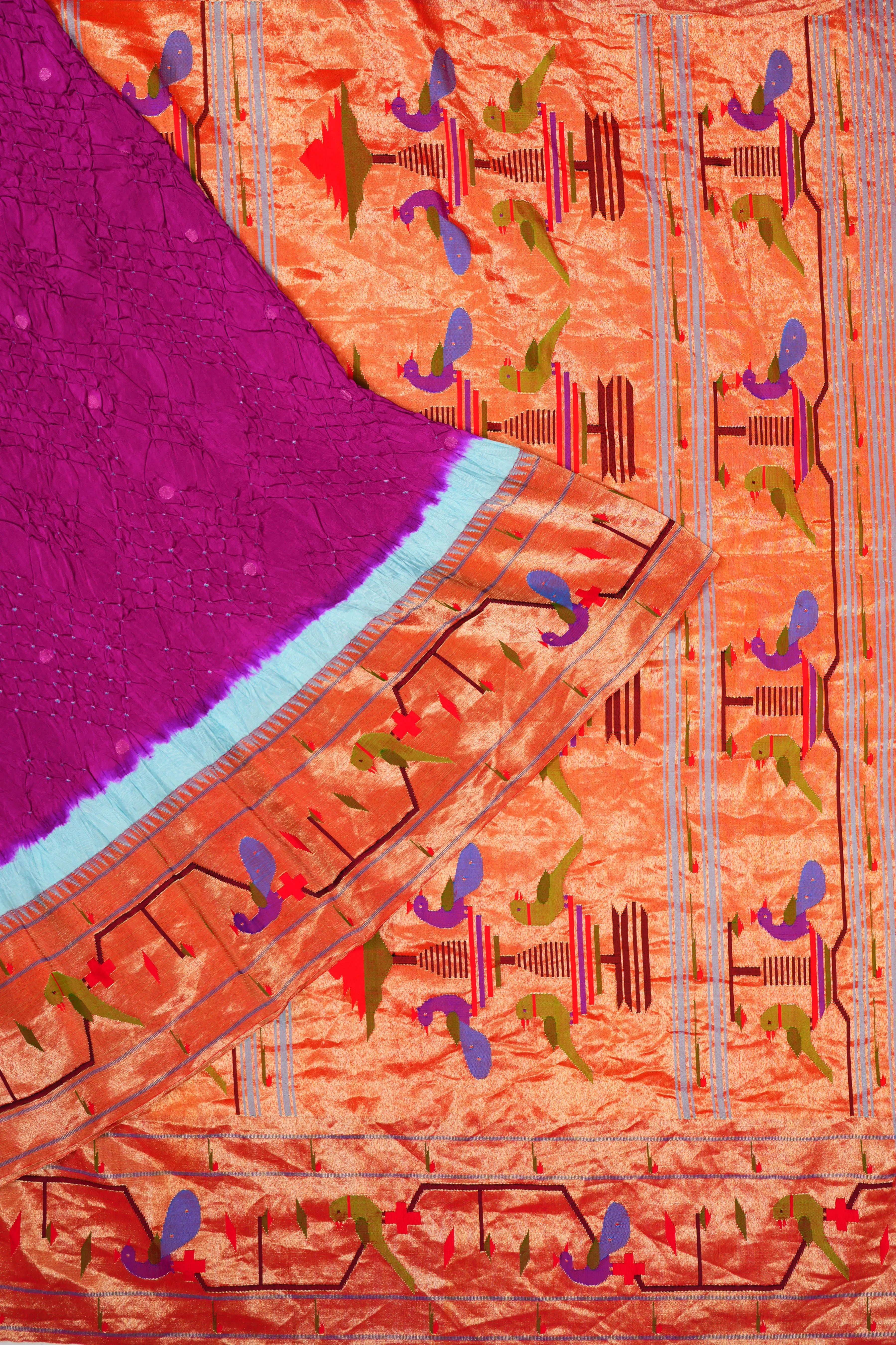 Our yellow paithani saree collection radiates the golden glow of turmeric and marigolds, essential elements in Indian celebrations. The black paithani saree pieces in our selection demonstrate sophisticated elegance, while our purple and orange variants provide options for those seeking distinctive, regal alternatives. Each color is achieved through traditional dyeing methods that ensure longevity and vibrancy.