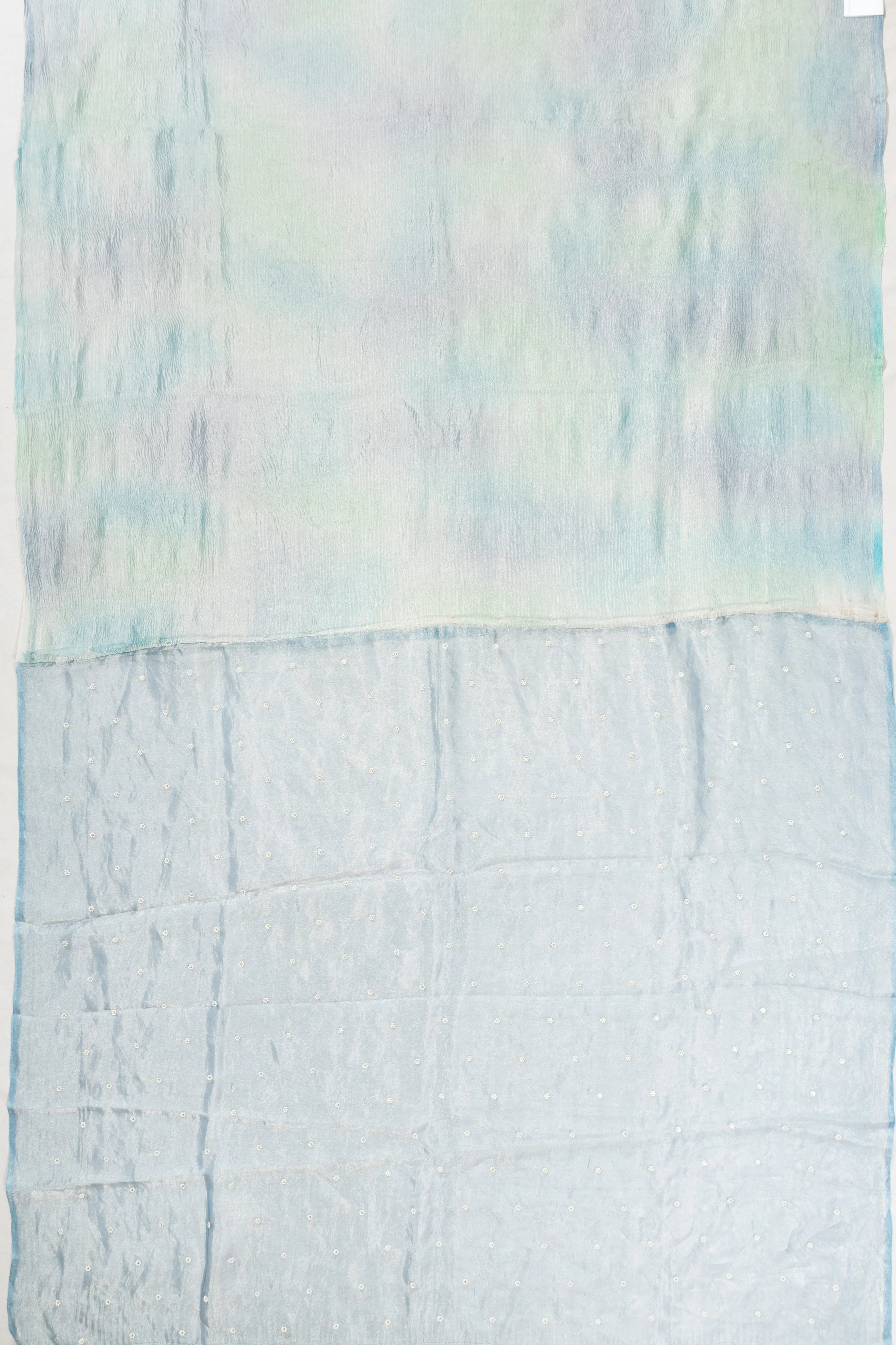 Crushed Organza Tissue Sea Blue Saree With Embroidery Border