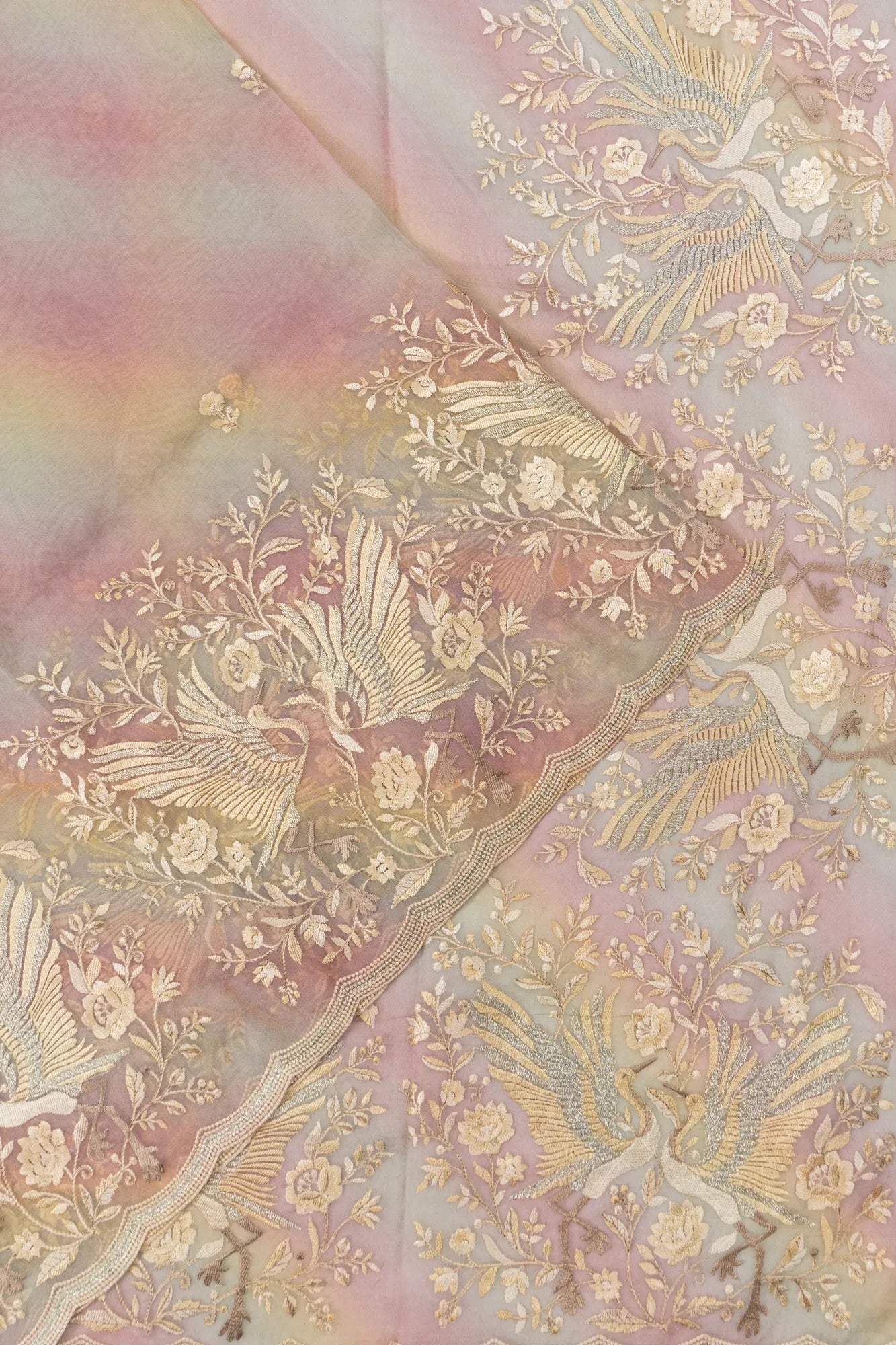 Organza Butta Pink Saree With Embroidery Scallop Border