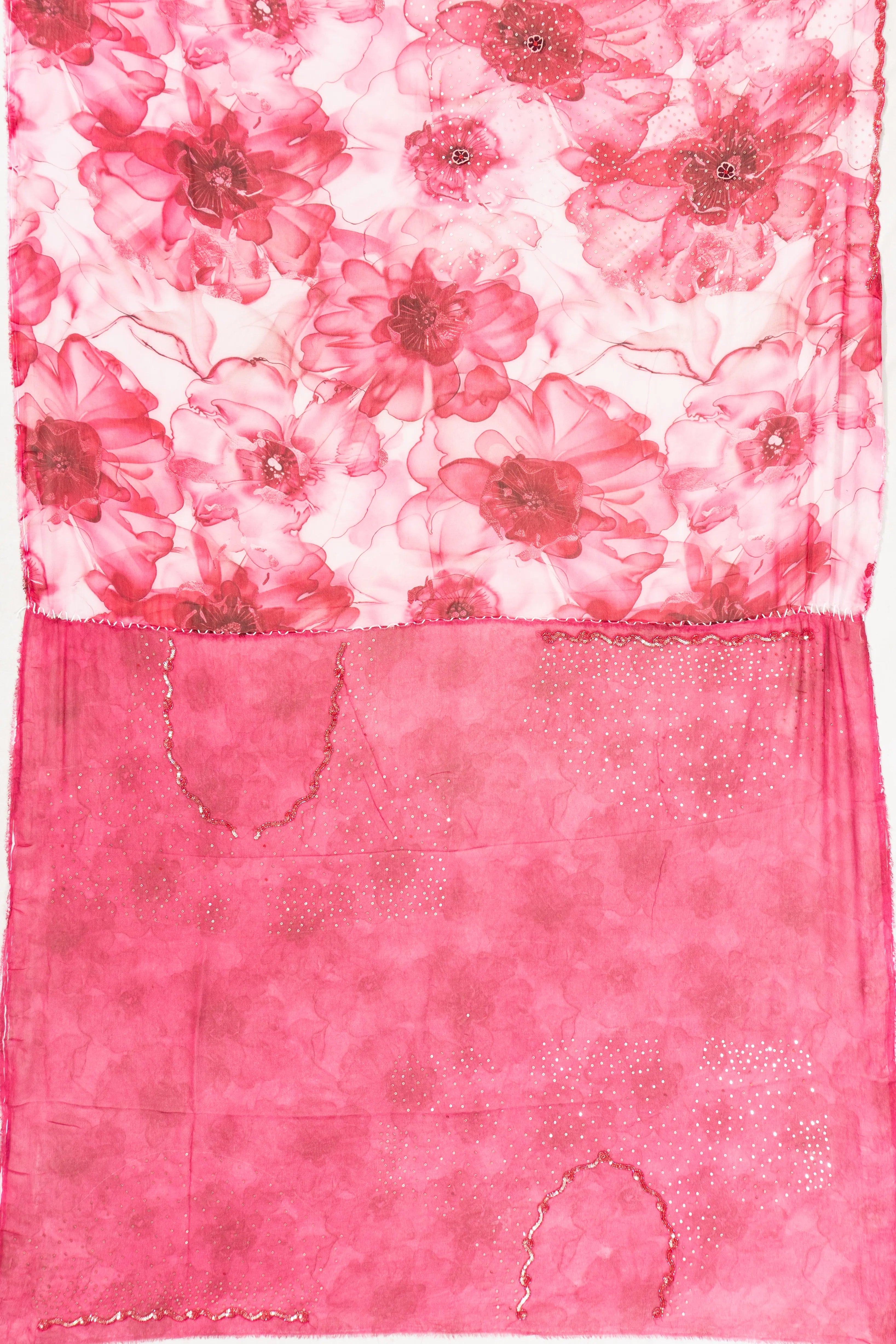 Embrace the charm of heritage with the Organza Printed Sequins Pink Saree, a captivating blend of tradition and modern elegance The saree is adorned with a printed shibori design and allover sequins work, offering a delightful sparkle that catches the eye with every movement