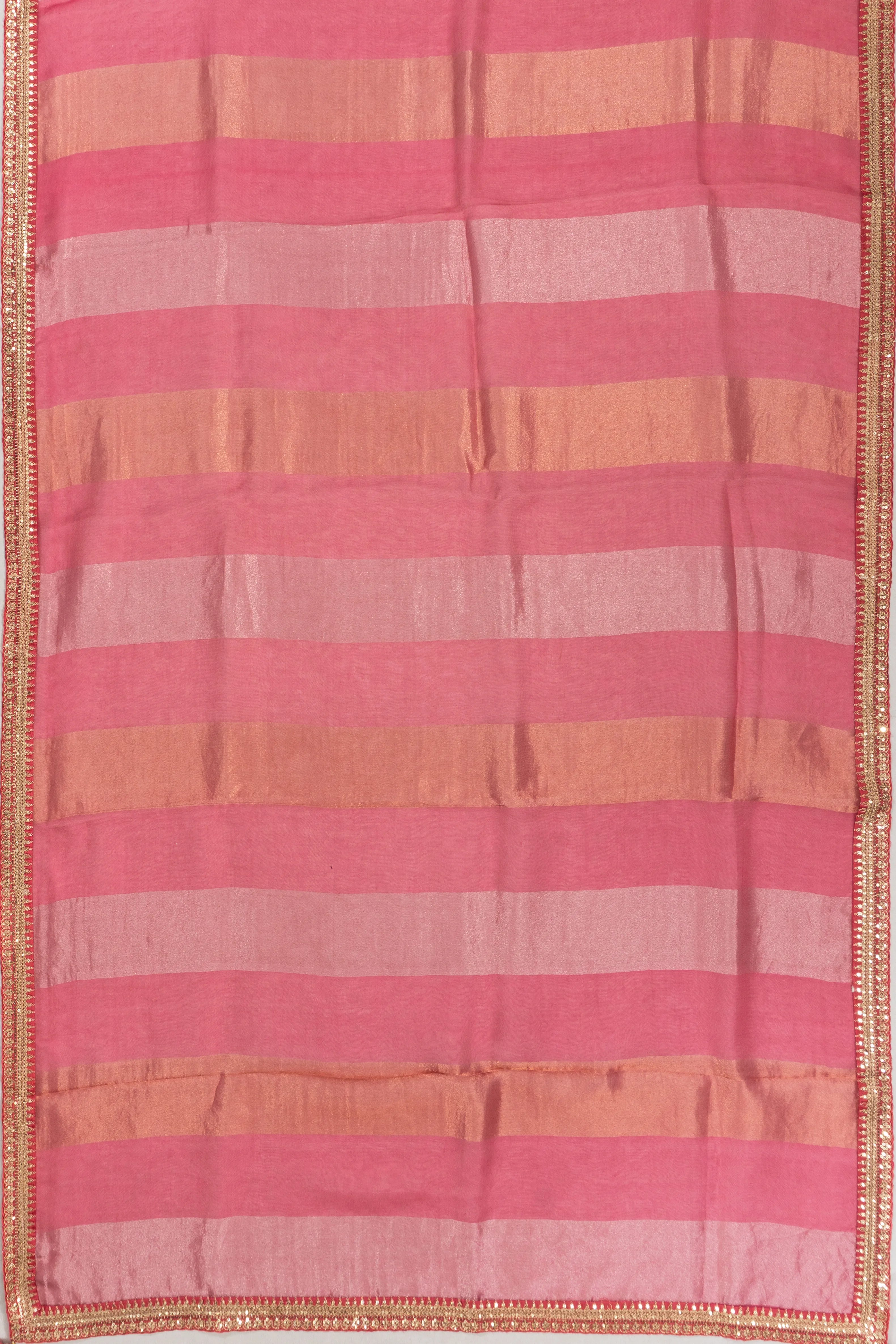 Embrace the essence of heritage with this Organza Tissue Plain Pink Saree, a captivating blend of grace and tradition The saree's plain body is elegantly offset by a contrast red border adorned with delicate, zari-free embroidery, adding a touch of refined charm