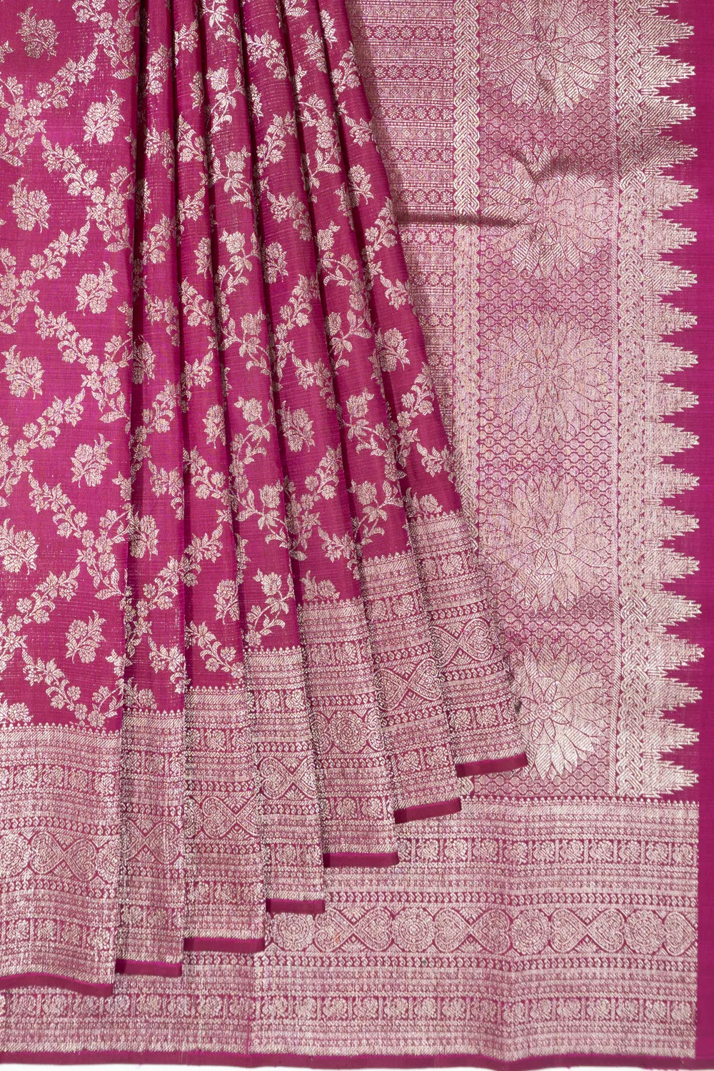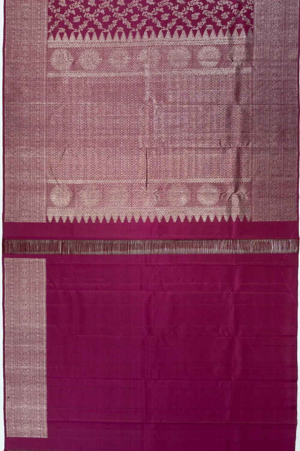 Deep purple base enhanced with antique zari floral brocade for a luxurious feel.